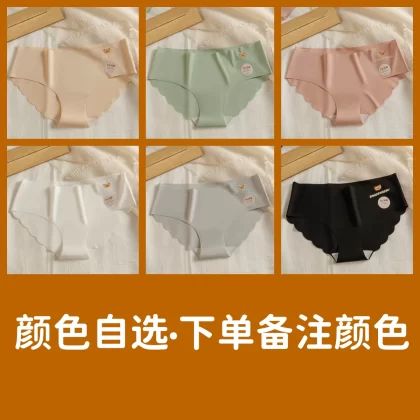 Underwear for girls 2024 new style seamless ice silk pure cotton bottom crotch 7A type antibacterial mid-waist sports pure desire triangle shorts