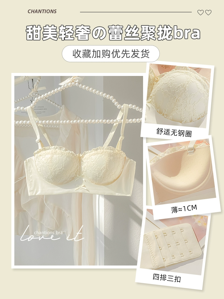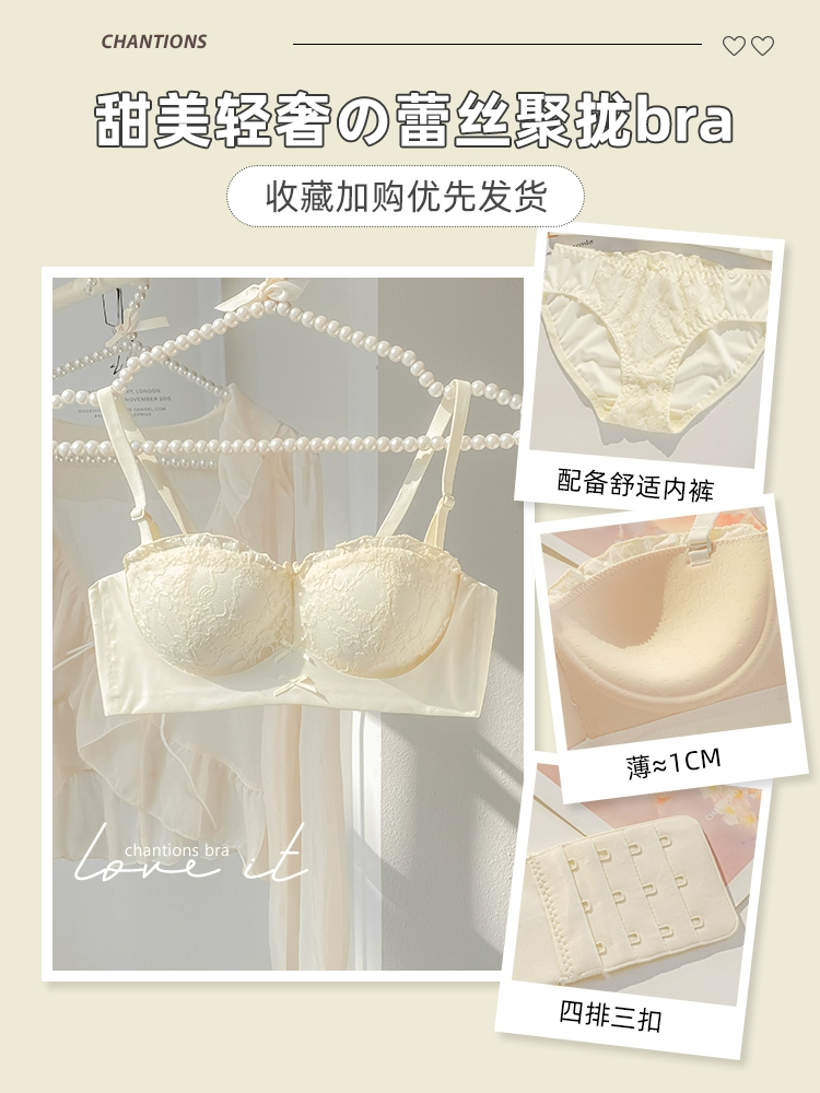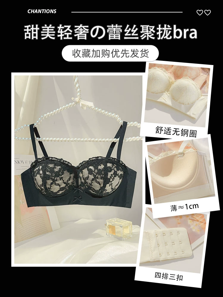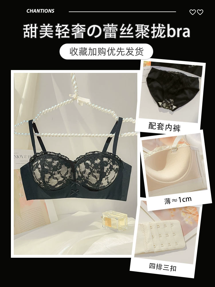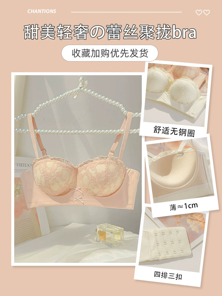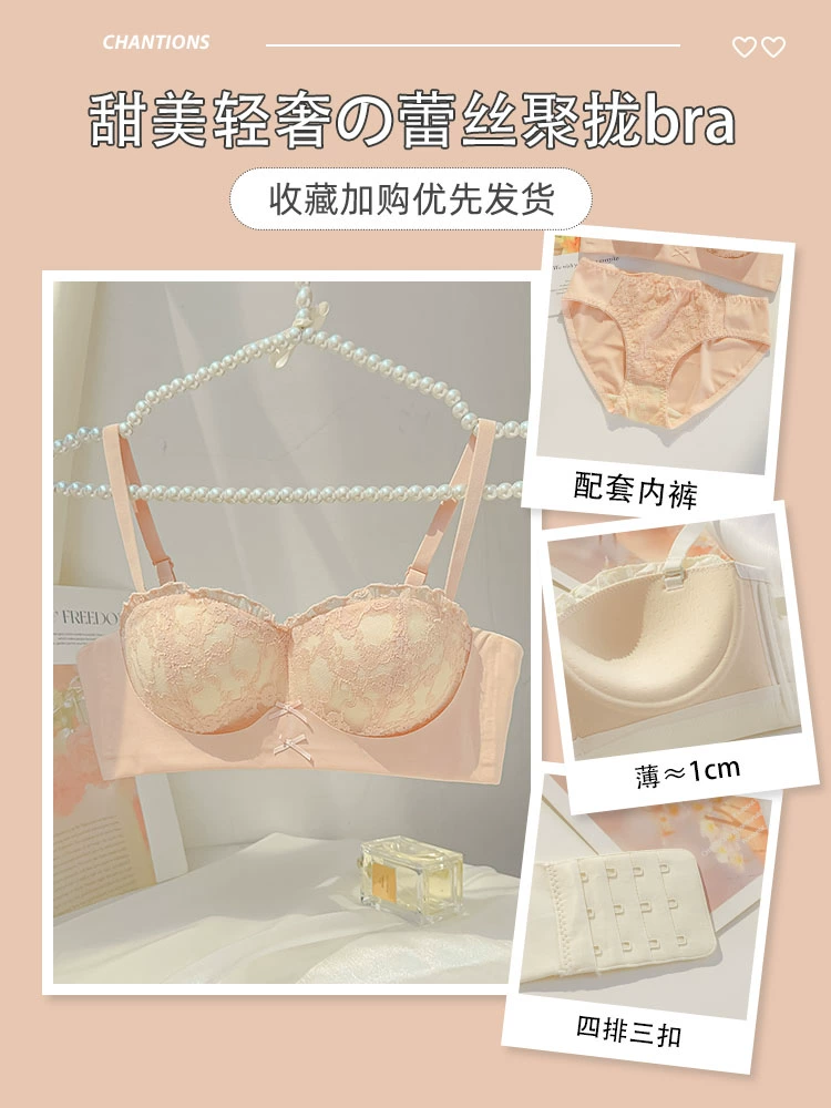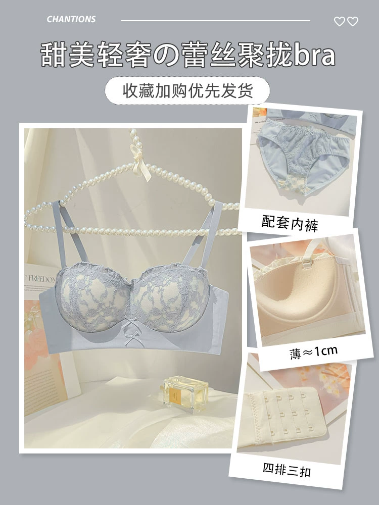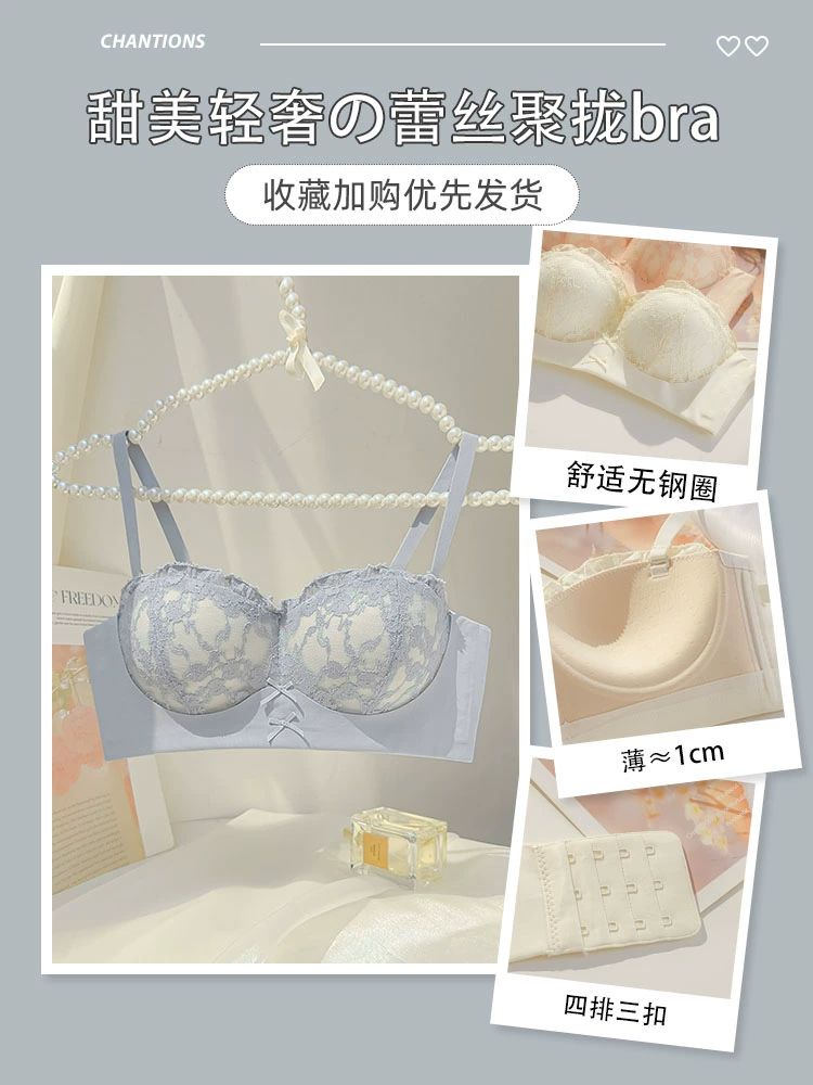 | nameOriginal | Underwear for women with small breasts gathered to make them look bigger summer thin steel-free anti-sagging lace sexy half-cup bra set |