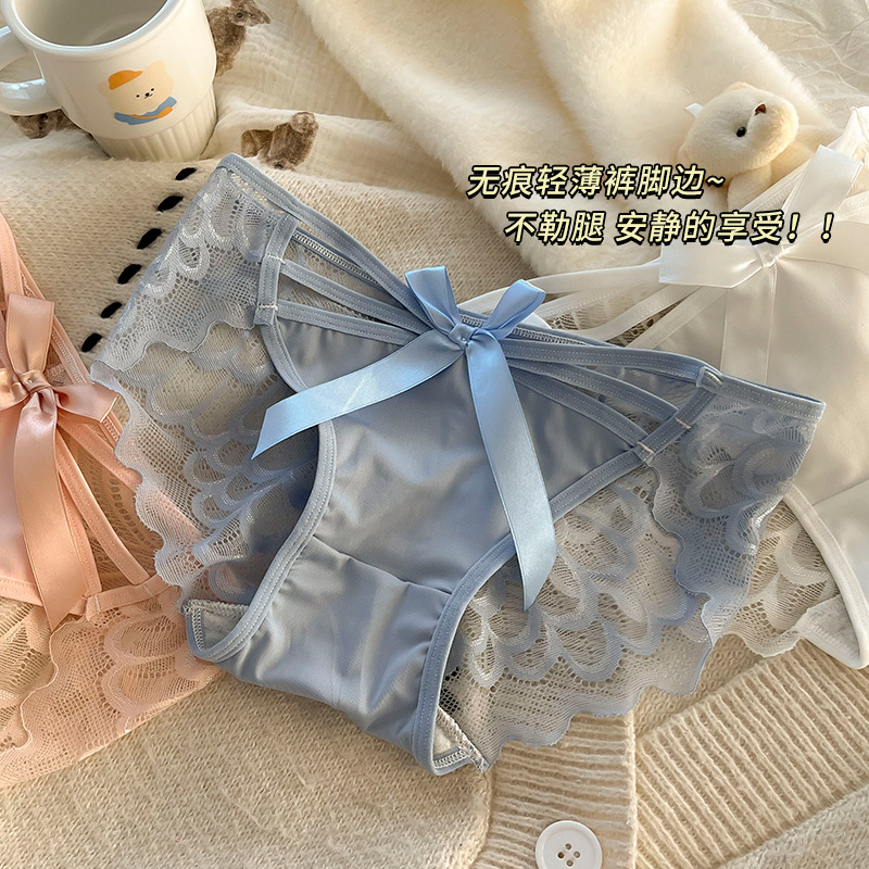 | nameOriginal | Underwear Women's Sexy Lace Hollow Bow Mid-waist Pure Desire Breathable Pure Cotton Crotch Less Women's Triangle Shorts |