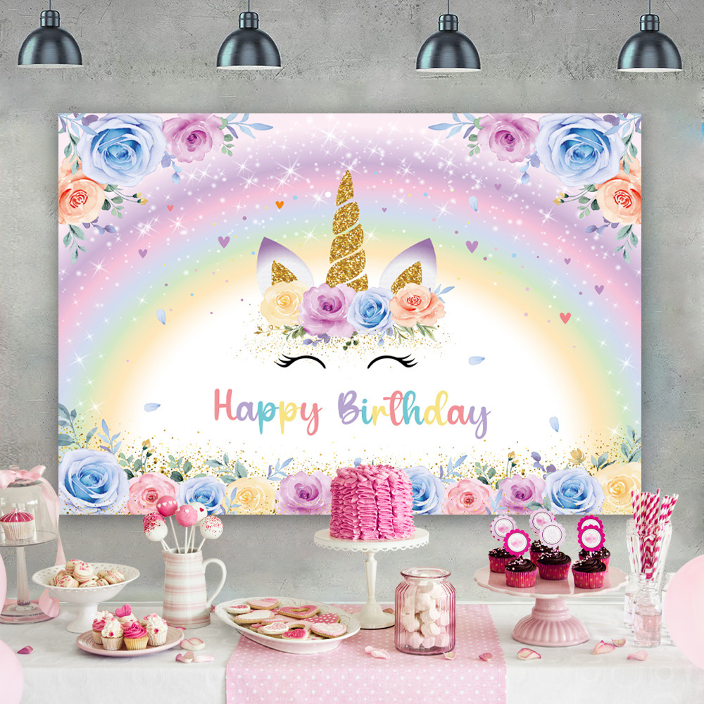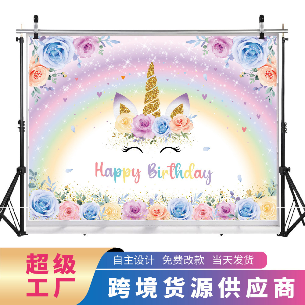 | nameOriginal | Unicorn background cloth Amazon birthday horizontal cloth theme party decoration hanging cloth foreign trade cross-border manufacturers sales |