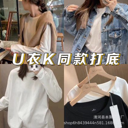 | nameOriginal | UnIqIo U clothing Library UJIA long-sleeved bottoming shirt Youjia T-shirt cotton round neck men's and women's same neckline with logo |