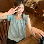 | nameOriginal | Unique blue round neck loose and chic flying sleeve shirt |