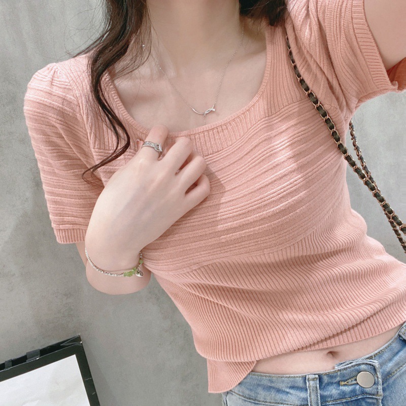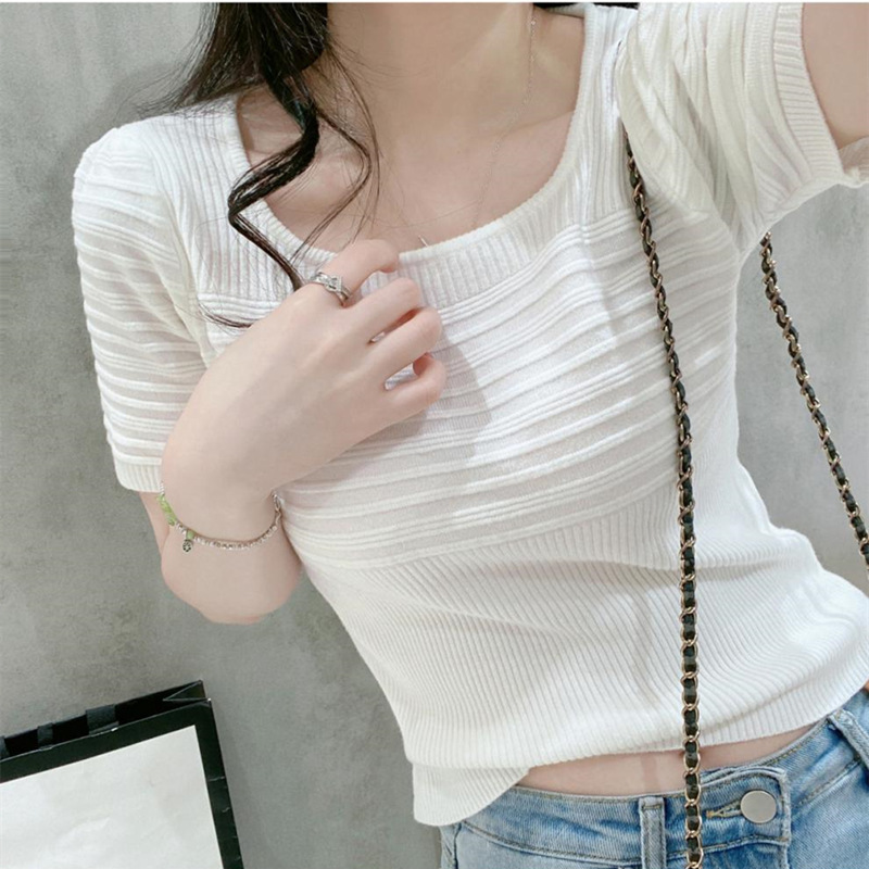 | nameOriginal | Unique Niche Summer Western Style Short Sleeve Square Collar Striped Design Top 2024 Korean Style Ice Silk Knitted Sweater |