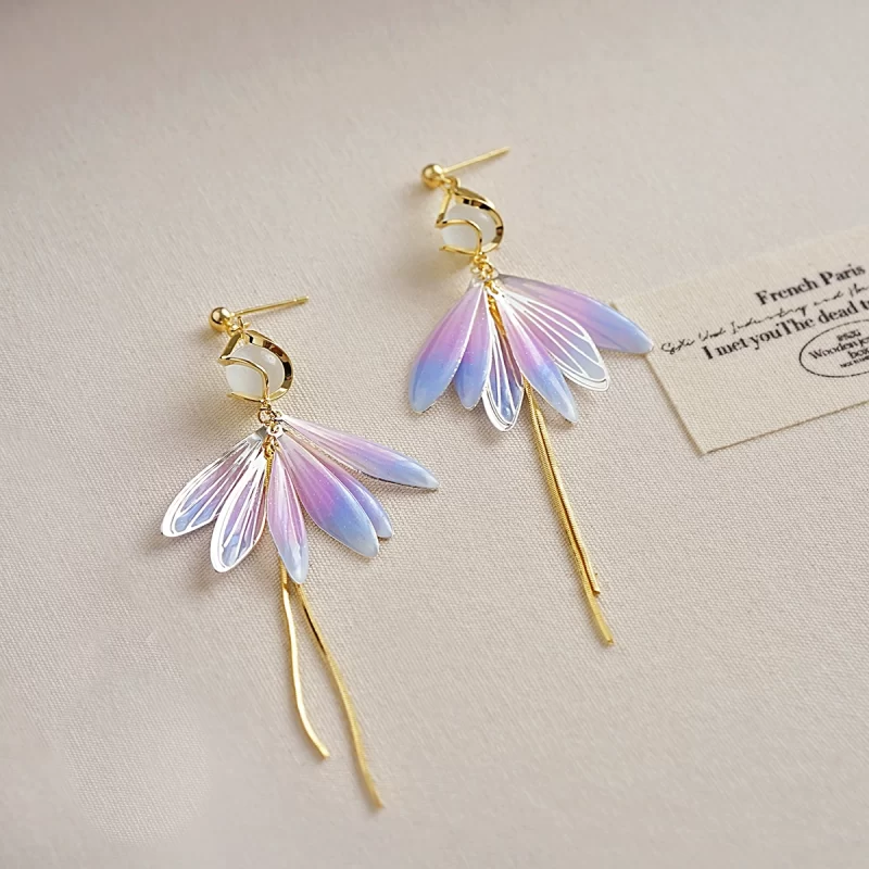 nameOriginal | Unique powder blue wings slimming cat's eye stone earrings |