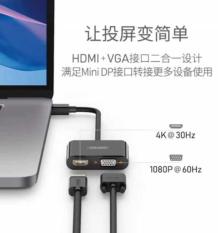 | nameOriginal | UNITEK mini DP to VGA HDMI converter is suitable for Apple Thunderbolt vga HDMI adapter |