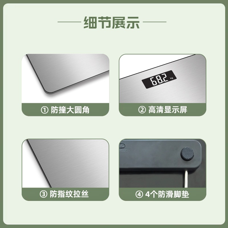 | nameOriginal | Universal Anti-Fingerprint Stainless Steel Face Weighing Scale Large Fillet Household Body Scale Wire-drawing Face Health Scale |