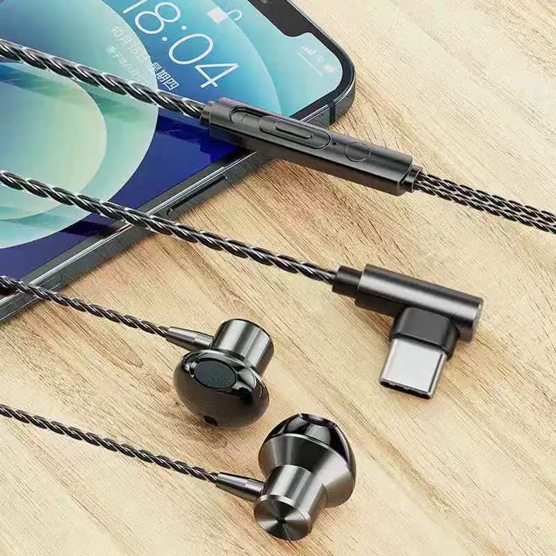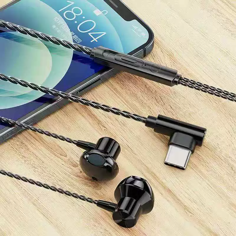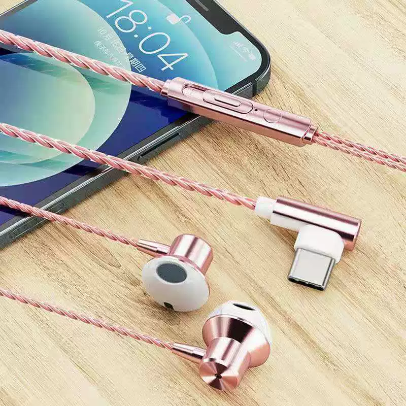 | nameOriginal | Universal L-shaped headphone elbow braided wire in-ear 3.5mm bass with microphone call karaoke chicken game headset |