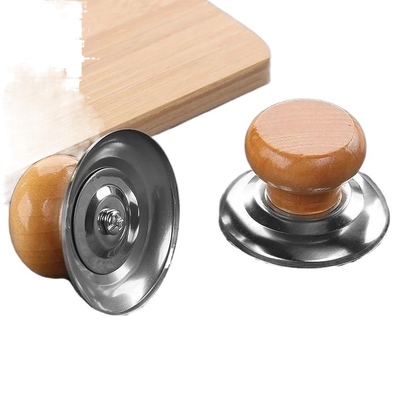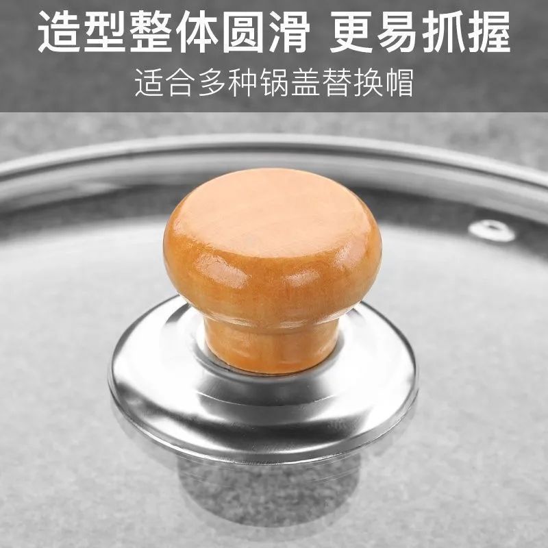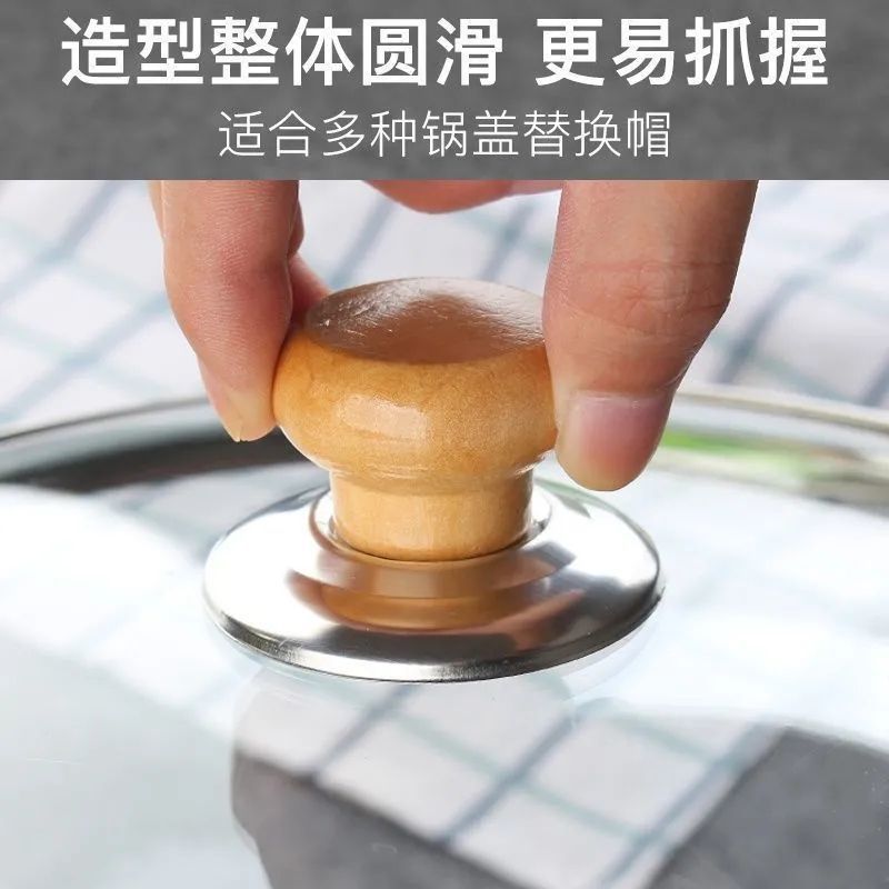 Universal Solid Wood Pot Lid Handle Anti-scalding Pot Cap Stainless Steel Pot Button Wok Steamer Pot Lid High Temperature Resistant Handle