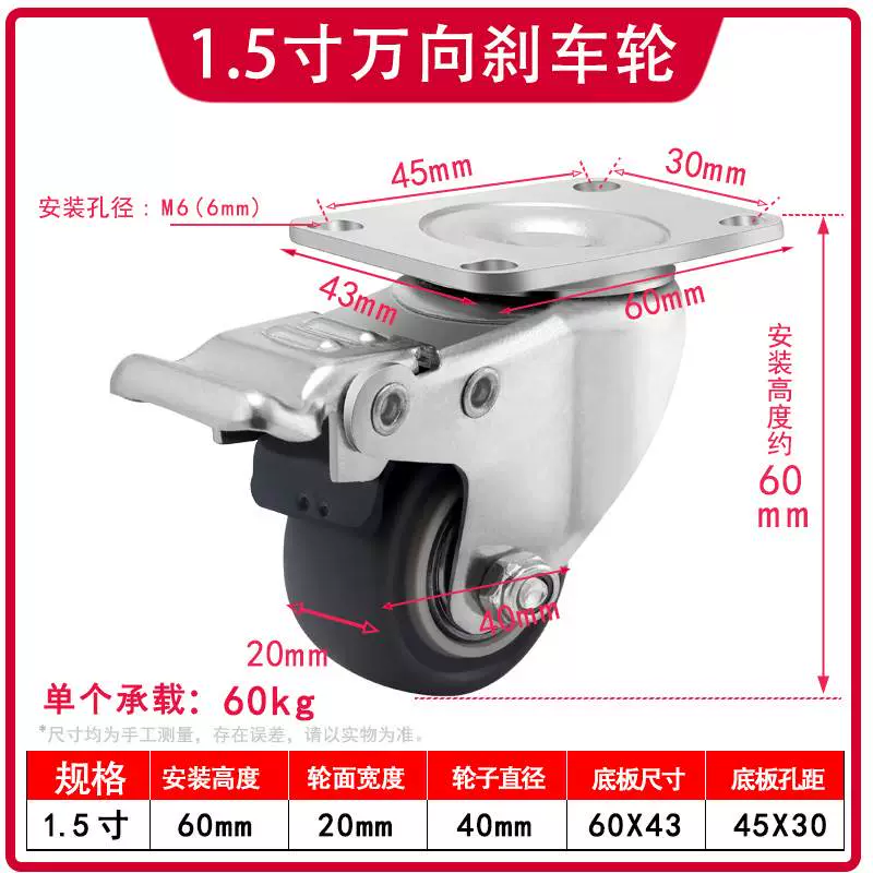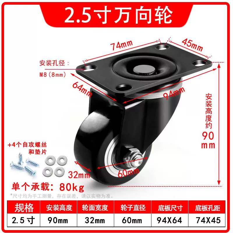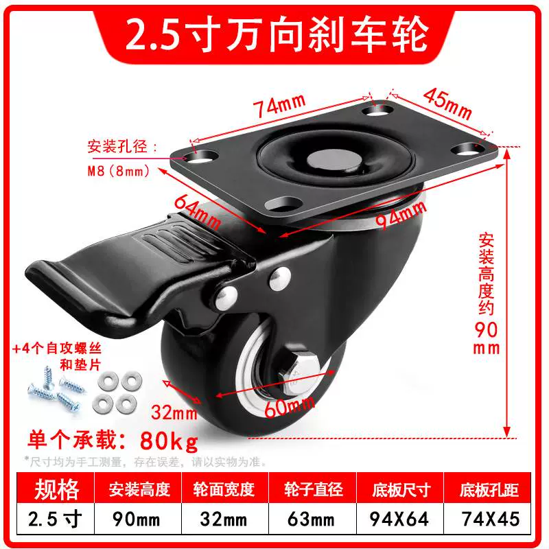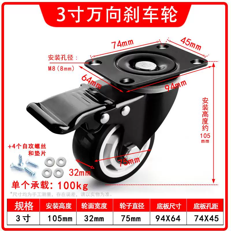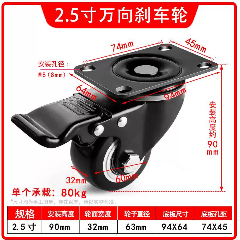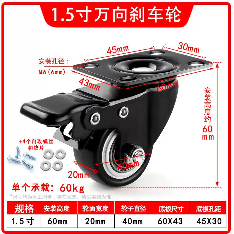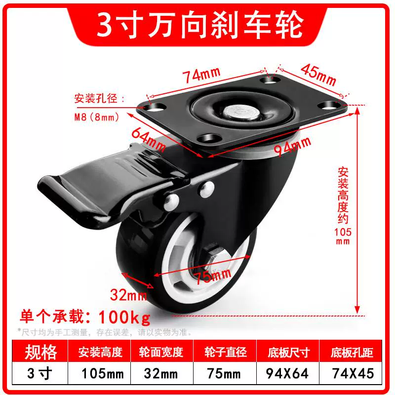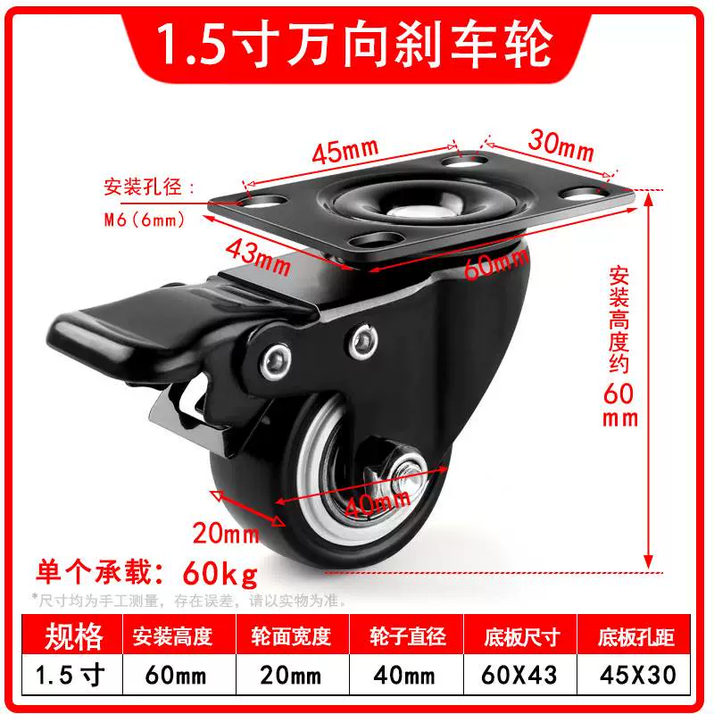 | nameOriginal | Universal wheel 1.5 inch 2 inch 3 inch caster silent all-purpose brake directional wheel roller pulley small cart |