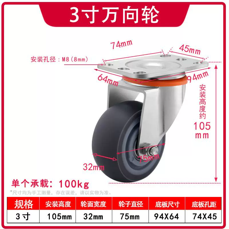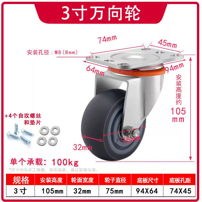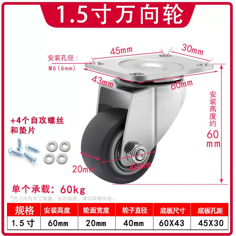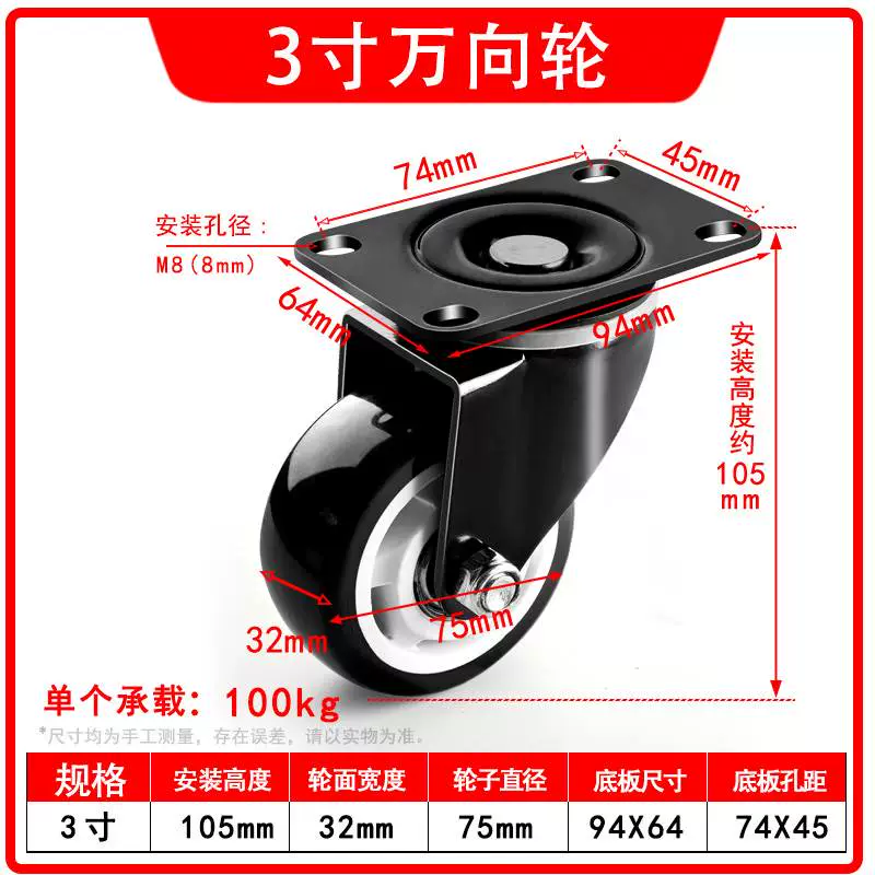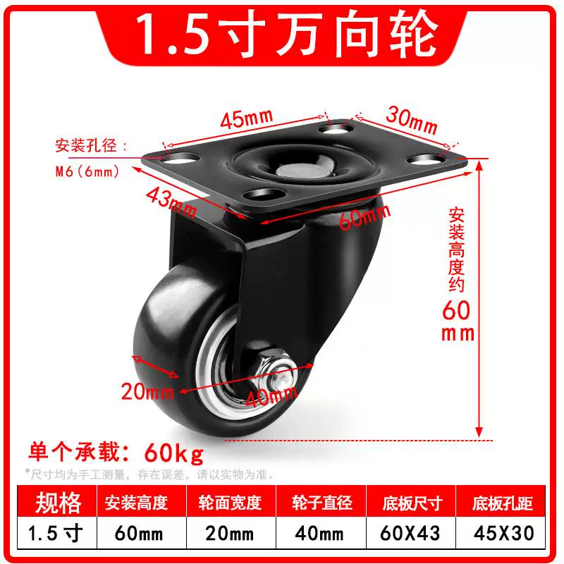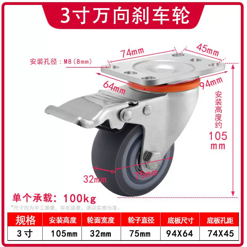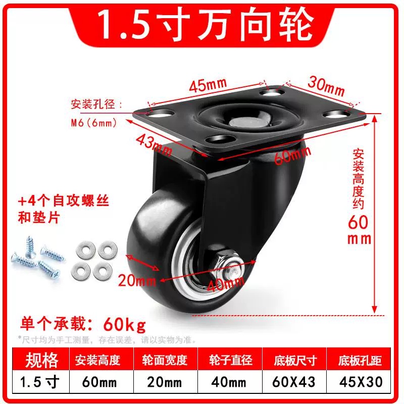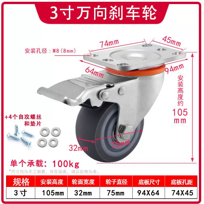 | nameOriginal | Universal wheel 1.5 inch 2 inch 3 inch caster silent all-purpose brake directional wheel roller pulley small cart |
