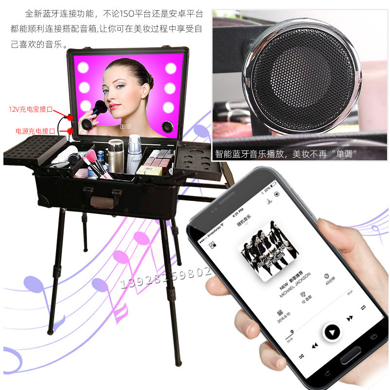 | nameOriginal | Universal Wheel New Bluetooth Makeup Case with Light Aluminum Alloy Tie Rod Makeup Case Hairdressing Tattoo Nail Art Toolbox |