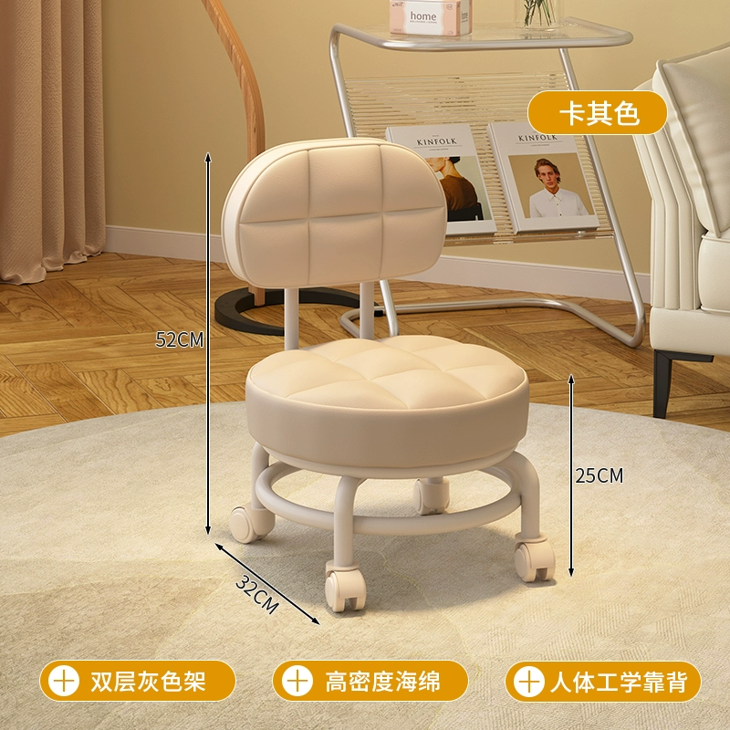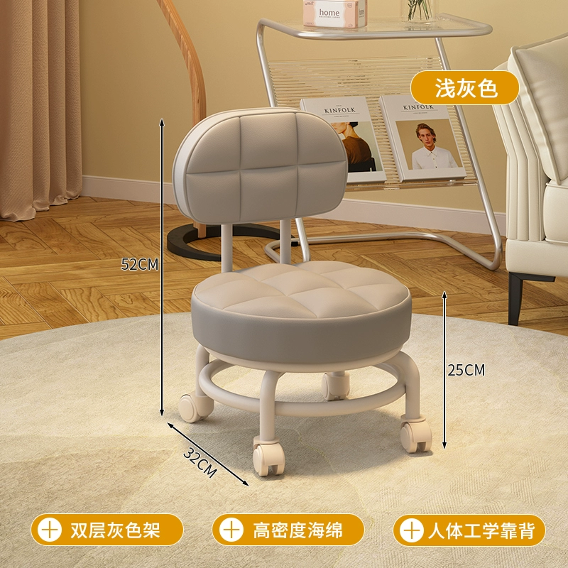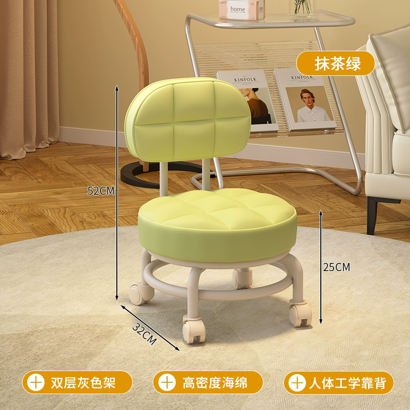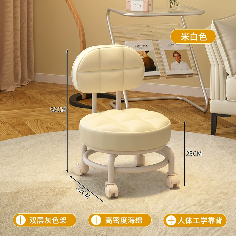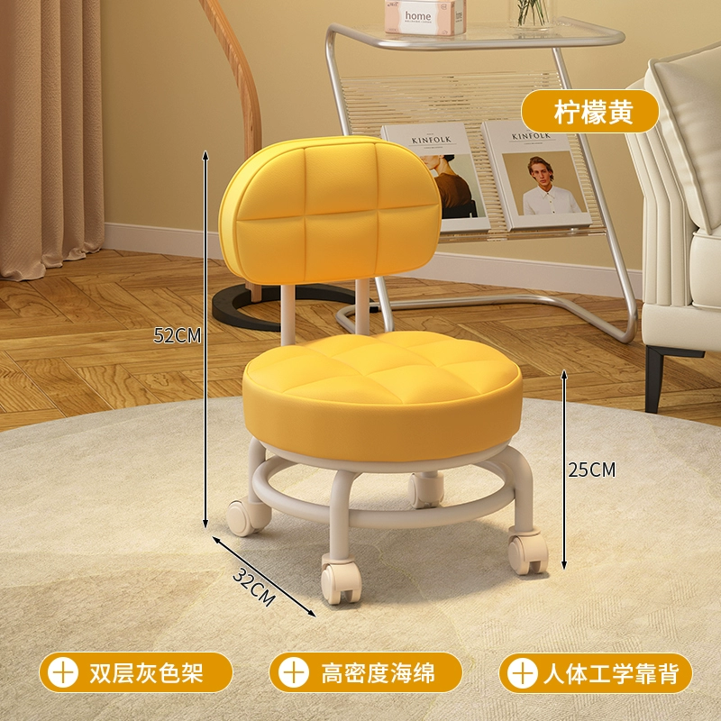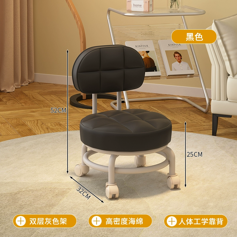 | nameOriginal | Universal wheel small stool with wheels household pulley low stool small bench acrylic backrest small chair sofa stool round stool |