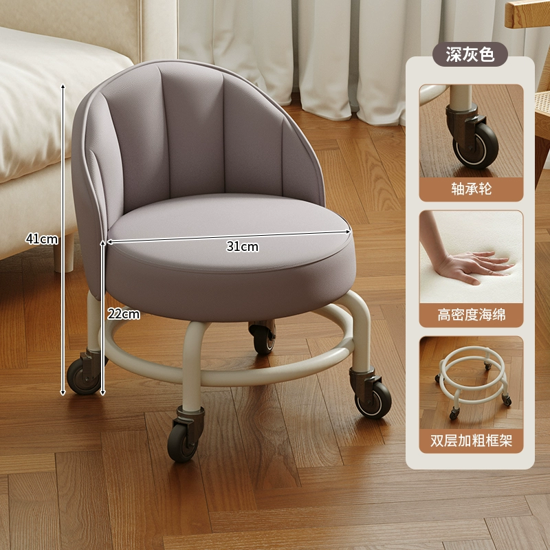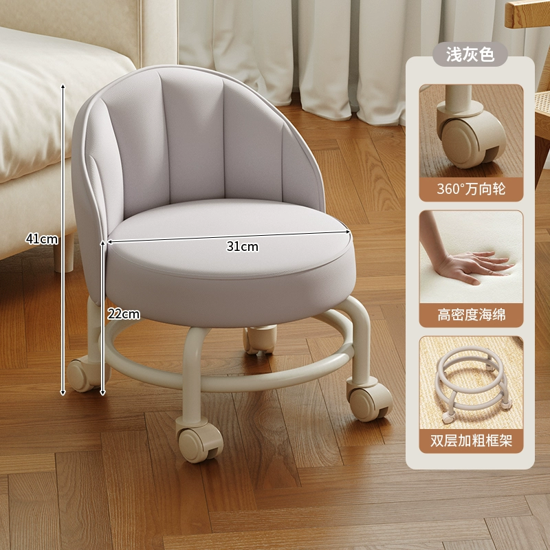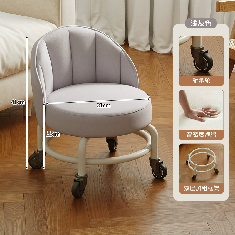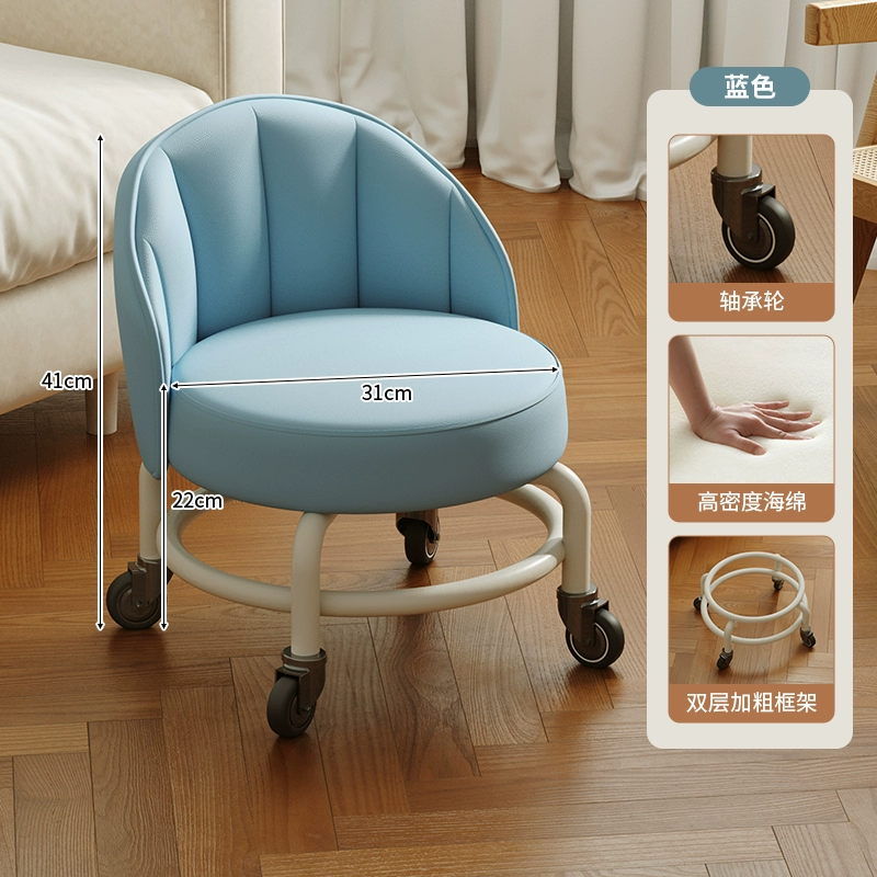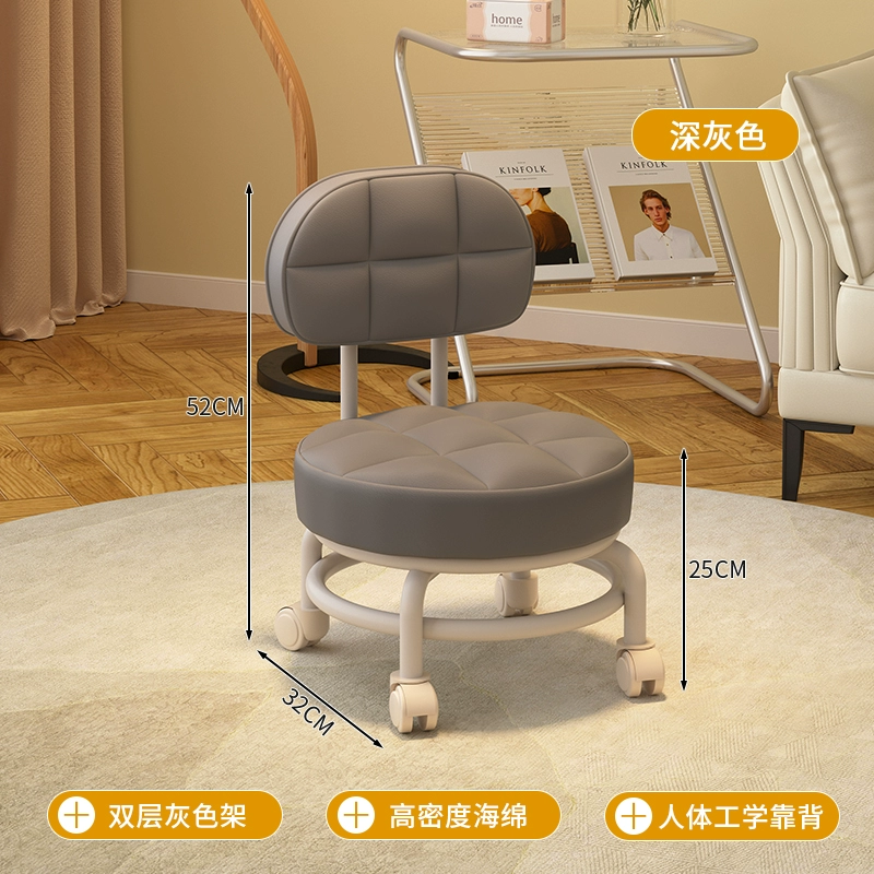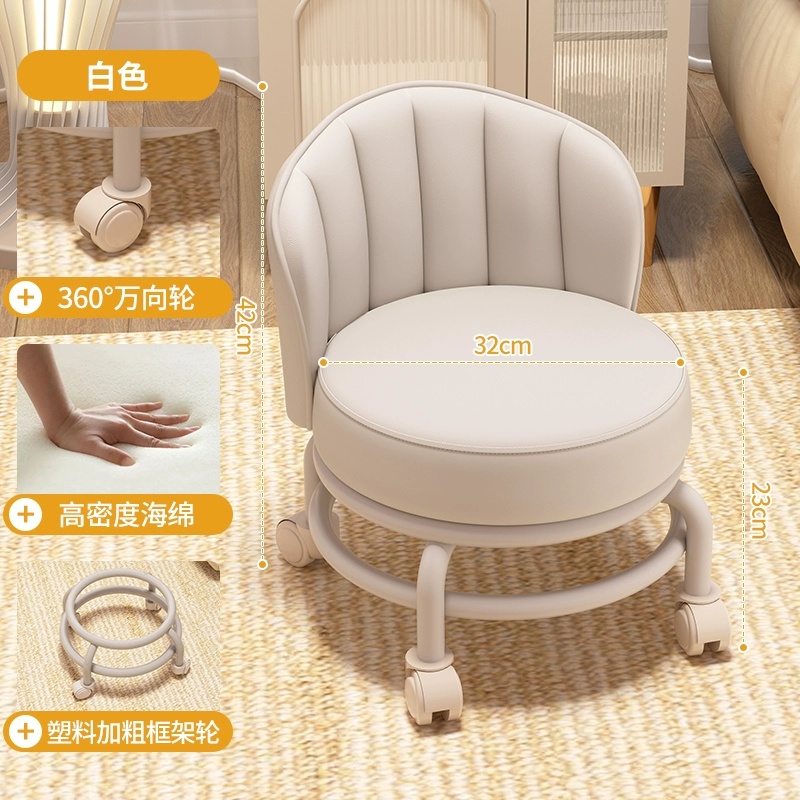 | nameOriginal | Universal wheel small stool with wheels household pulley low stool small bench acrylic backrest small chair sofa stool round stool |