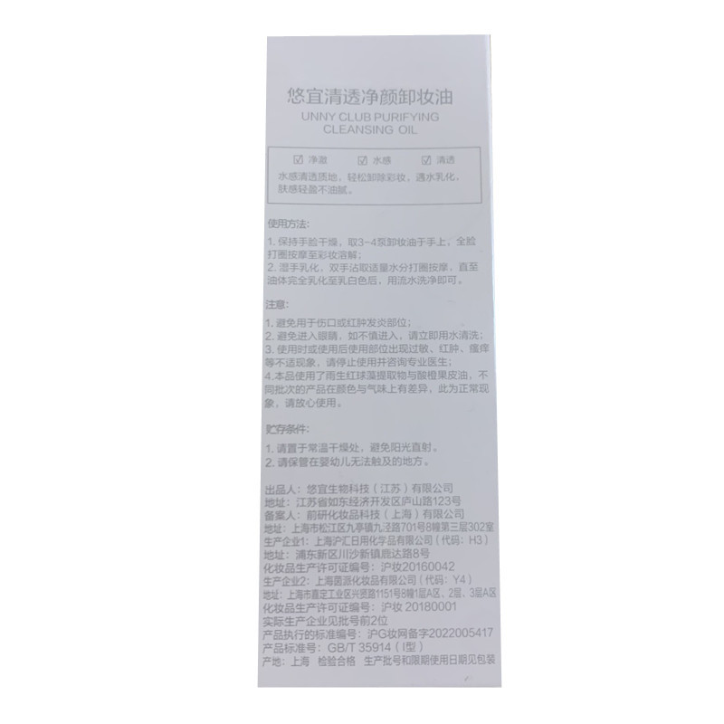 | nameOriginal | Unny makeup remover oil-soluble makeup heavy makeup official flagship store astaxanthin milk eyes, face and lips three-in-one clean genuine students |