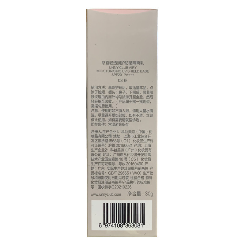 | nameOriginal | UNNY Official Flagship Store Isolation Cream Invisible Pore Concealer Base Makeup Front Cream Authentic Student Parity Plain Cream |