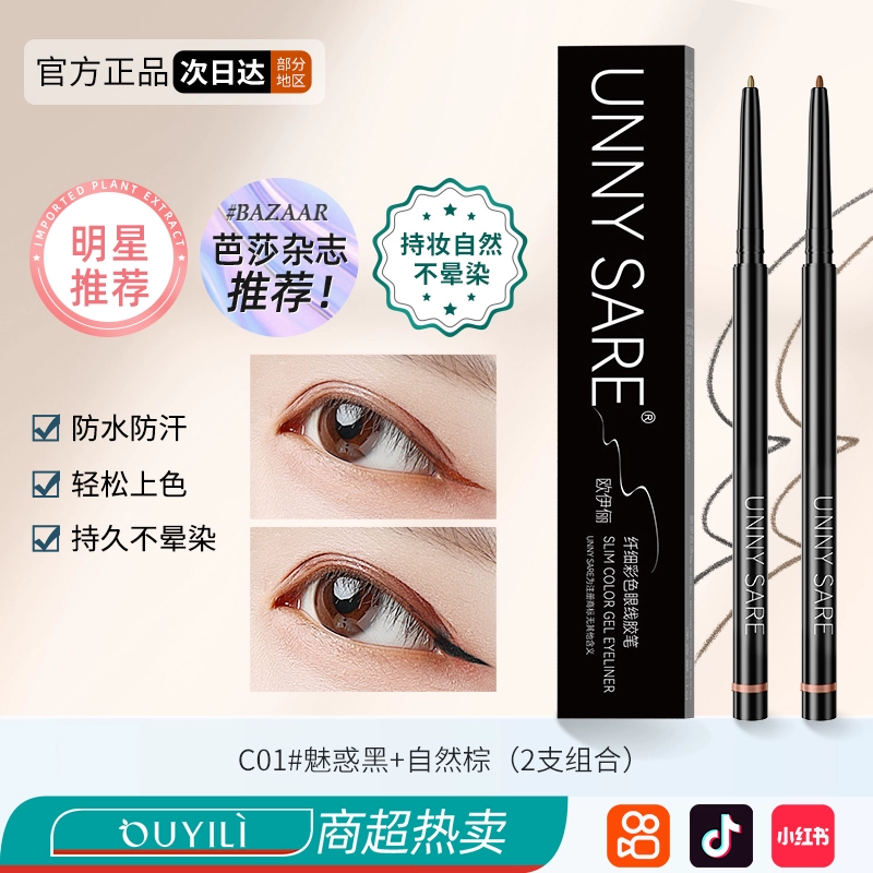 UNNY SARE eyeliner gel pen is waterproof, not easy to smudge, long-lasting, student novice eyeliner pen, genuine official