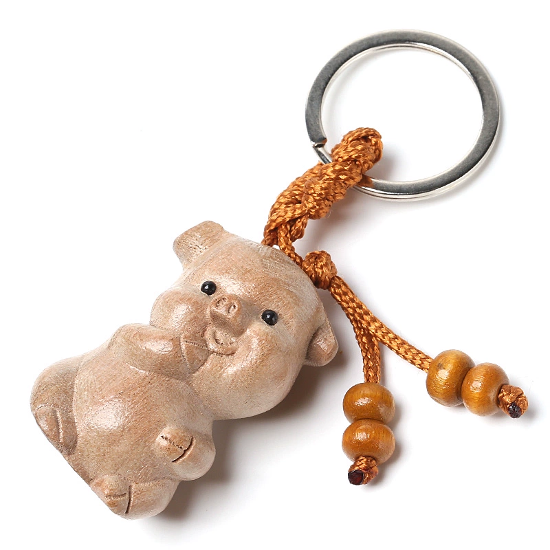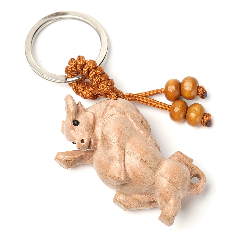 | nameOriginal | Unpainted peach wood carving twelve zodiac animals: rat, ox, tiger, rabbit, dragon, snake, horse, sheep, monkey, chicken, dog, pig key pendant mascot |