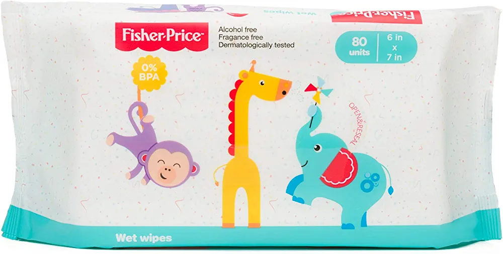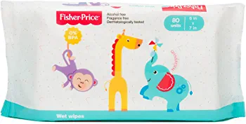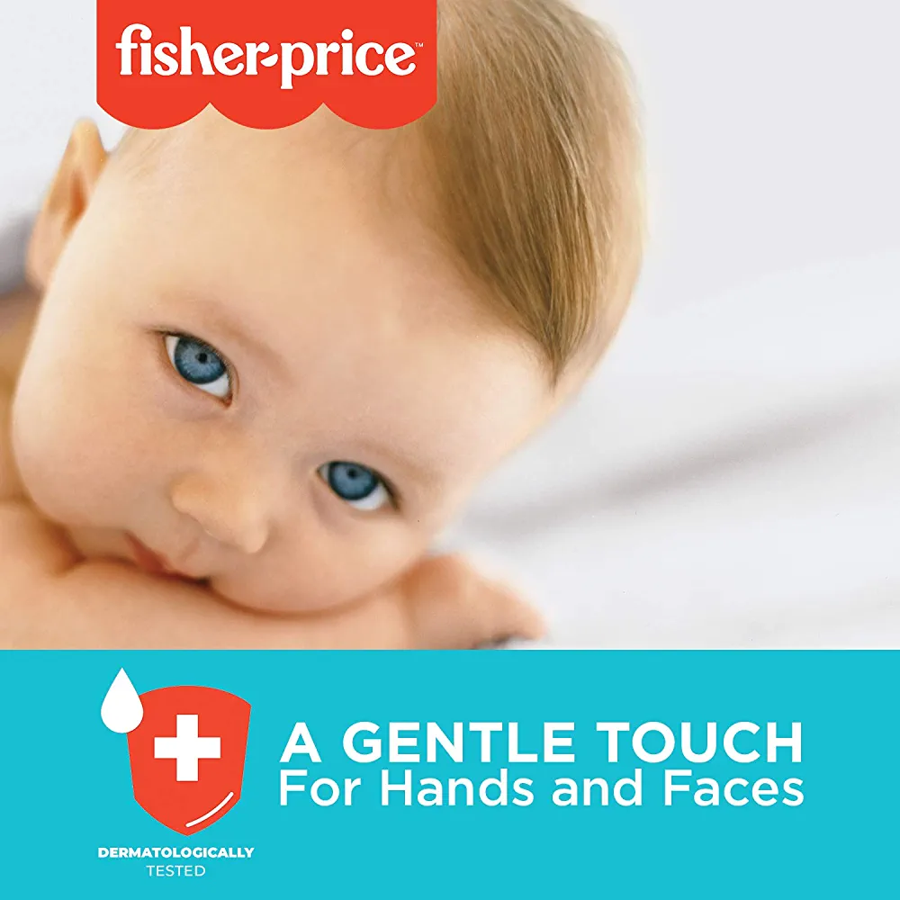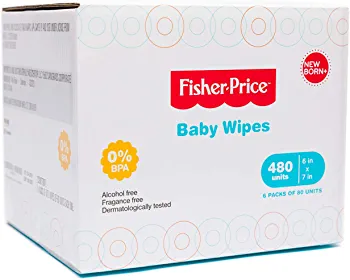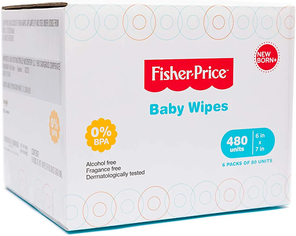 Introducing Fisher-Price unscented baby wipes, featuring the thoughtful details and playful connection that only Fisher-Price can provide. Fisher-Price wipes are gentle yet effective; they gently remove impurities to leave baby's skin feeling fresh and clean. Made with 99% pure water (aqua) and pH-balanced, the water baby wipes are specially developed for newborn and sensitive skin. They're fragrance free, alcohol free, paraben free and free of elemental chlorine or dye. Great for easy wiping when changing a diaper, the baby wipes are clinically proven hypoallergenic. Mild enough for use on baby's bottom, but strong enough to clean face and hands after messy meal or play times. Packaging features some of the Fisher-Price animals and characters that have entertained generations of children and invite adults back to the world of childhood. Let's be kids. Contains 6 packs of 80 wipes (480 wipes total). Subscribe and Save to ensure you always have a box of Fisher-Price wipes for babies on hand.