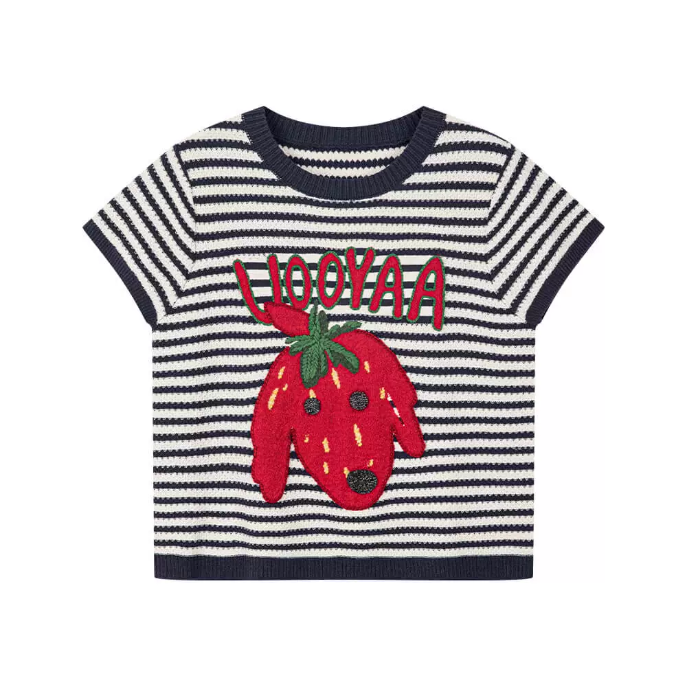 | nameOriginal | UOOYAA autumn series fun strawberry striped T-shirt |