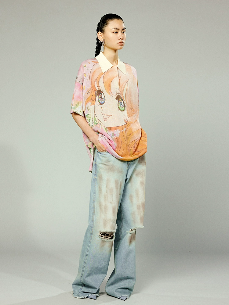 | nameOriginal | UOOYAA/wuya 2024 autumn new comic girl digital printing loose POLO collar T-shirt |