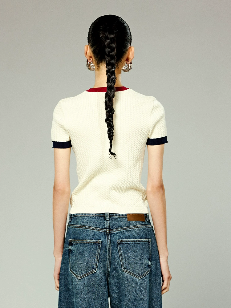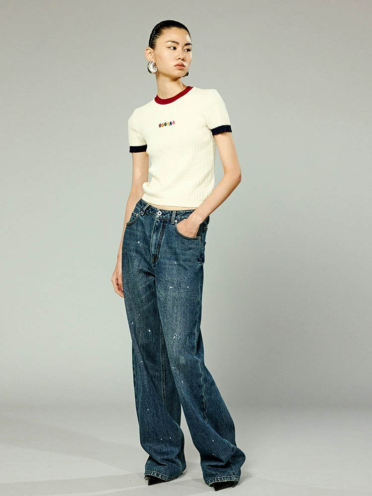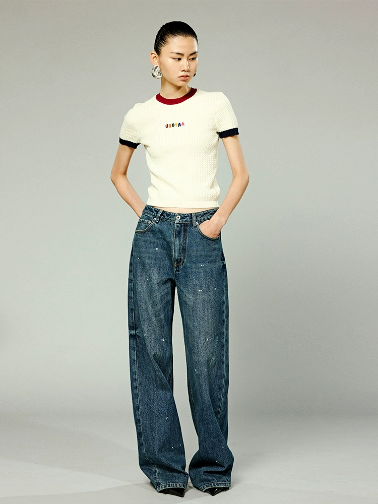 | nameOriginal | UOOYAA/ Wuya 2024 new autumn "College" series contrasting letters cable sweater T-shirt |