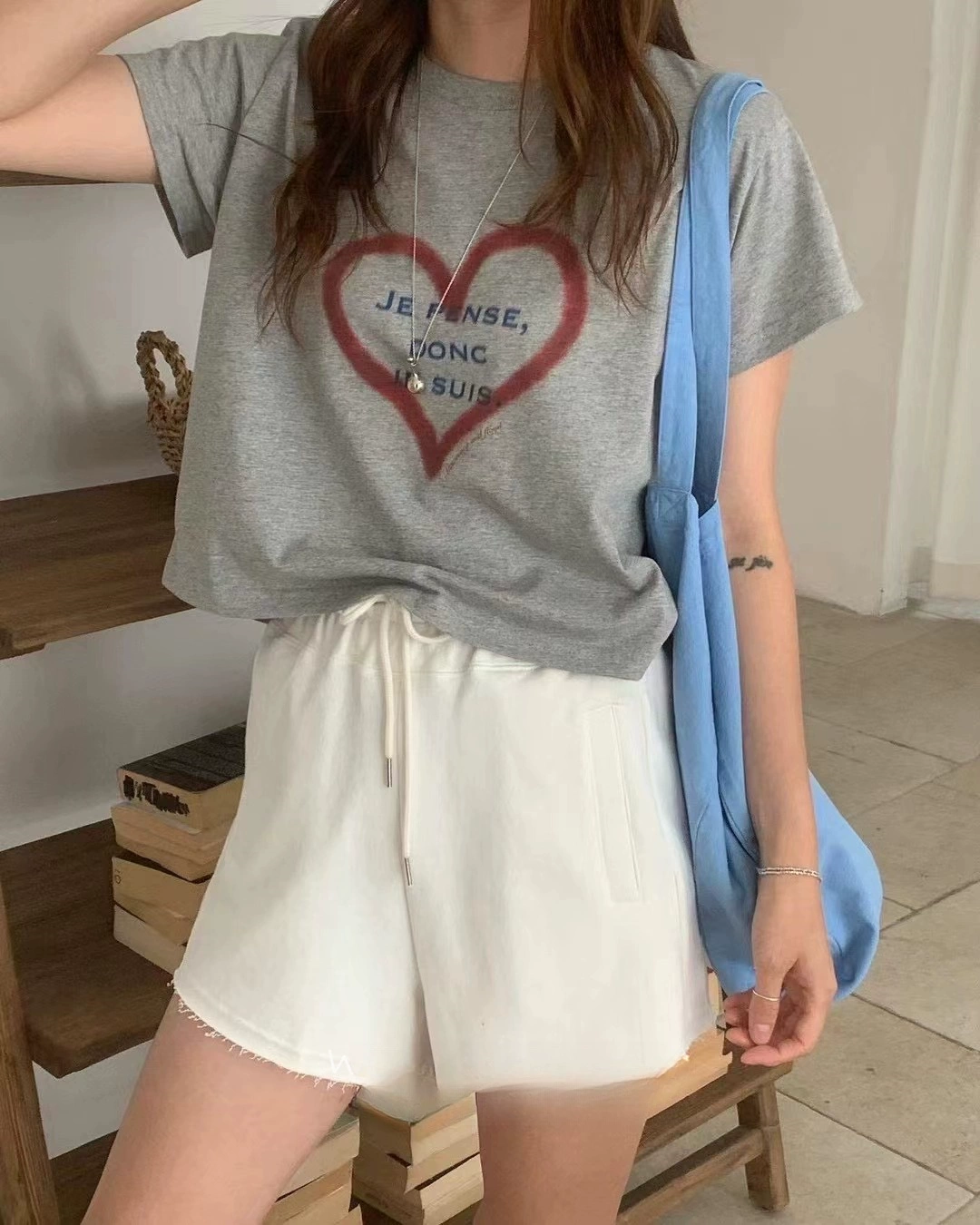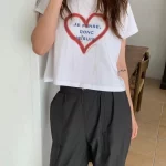 Up and on Korean style simple sweet love letters comfortable and versatile short round neck short sleeve T-shirt top