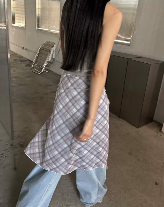 | nameOriginal | Up retro diagonal plaid buttoned irregular skirt |