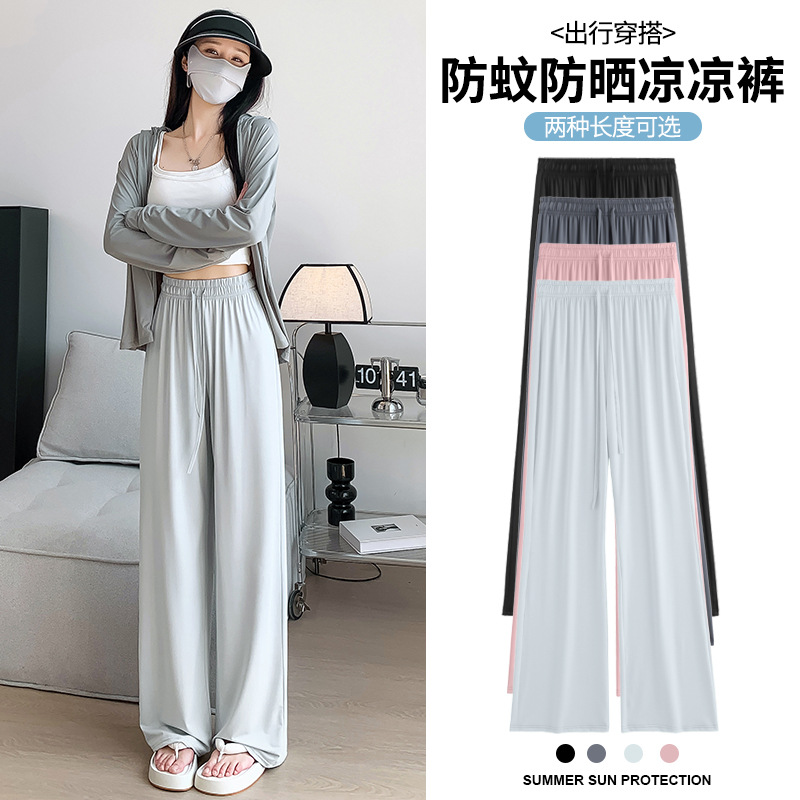 | nameOriginal | UPF50 Black Sun Protection Pants Women's 2024 Summer New High Waist Dosing Straight Casual Wide Leg Pants Drawstring Ice Silk |