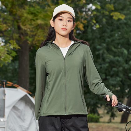 UPF50 + Ice Silk sun protection clothing women’s UV protection lightweight breathable ice-sensitive sun protection clothing outdoor riding skin clothing summer