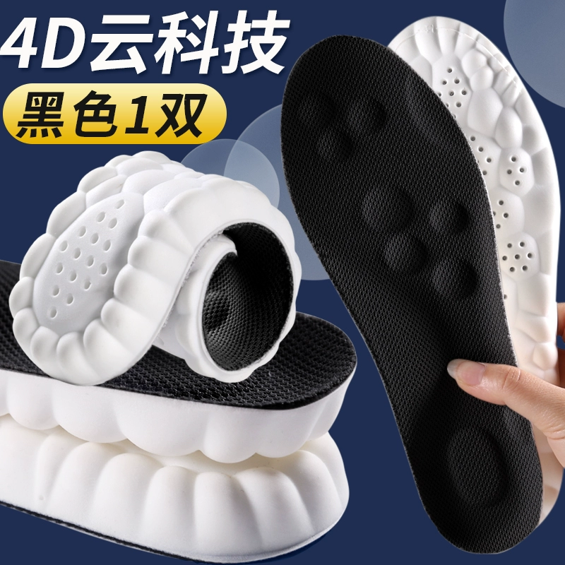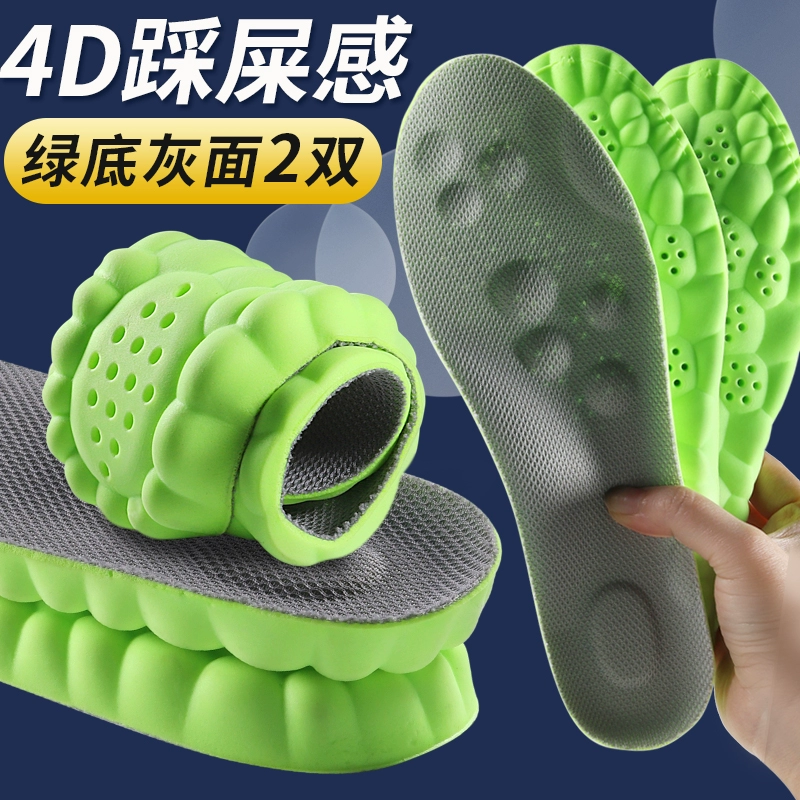 Upgraded and thickened 4D sports shock-absorbing insoles for men and women, soft and ultra-soft long-standing arch support, sweat-absorbent and anti-odor