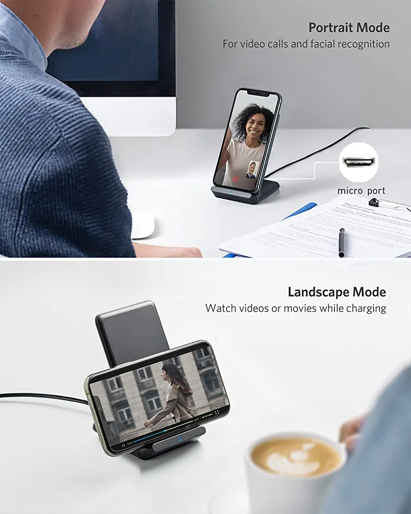 The PowerWave stand simplifies charging for your Qi-enabled device. Just place your phone on the stand and let it do the work. The charging modes automatically adjust to your device’s power needs, providing optimized charging for iPhones, Samsung Galaxies, and other Qi-enabled devices. With our MultiProtect safety system, you can trust that your device is protected from foreign objects, short circuits, and temperature issues. The stand allows for horizontal viewing while charging, or switch to vertical charging for messaging and facial recognition. Enjoy the convenience of wireless charging with total peace of mind.