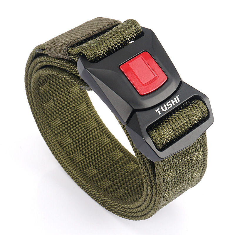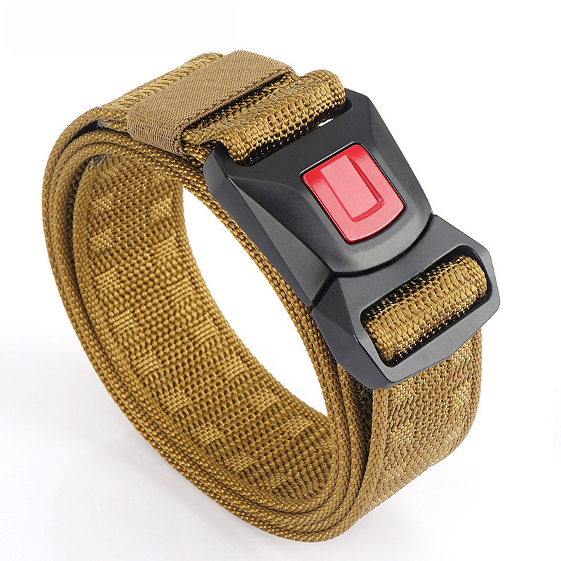 Upgraded Buckle Fire Tactical Belt Nylon Camouflage Canvas Belt Student Training Pants with Safety Outer Belt