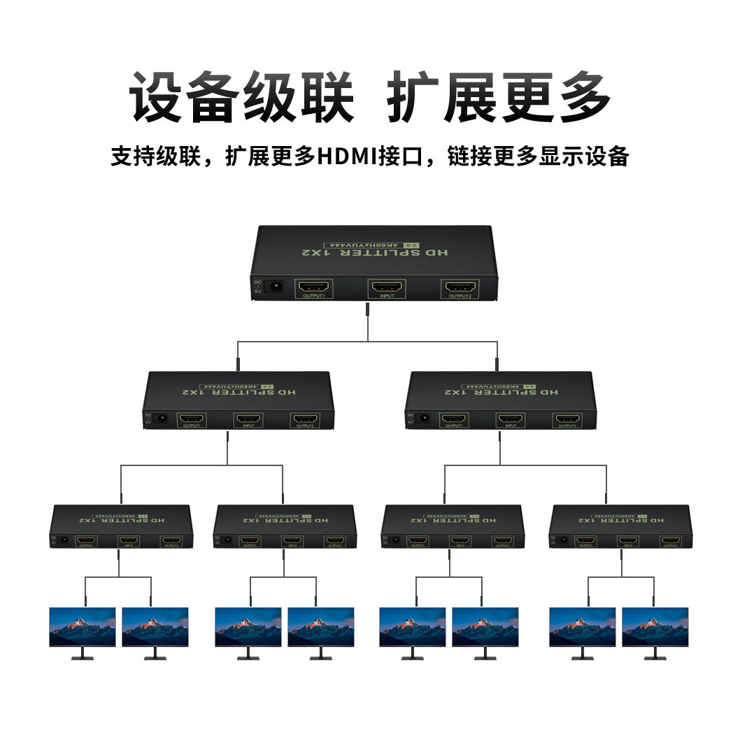 | nameOriginal | Upgraded HDMI distributor 1 minute 8 TV 2.0 screen splitter one in eight out 4K60Hz computer monitoring splicing |