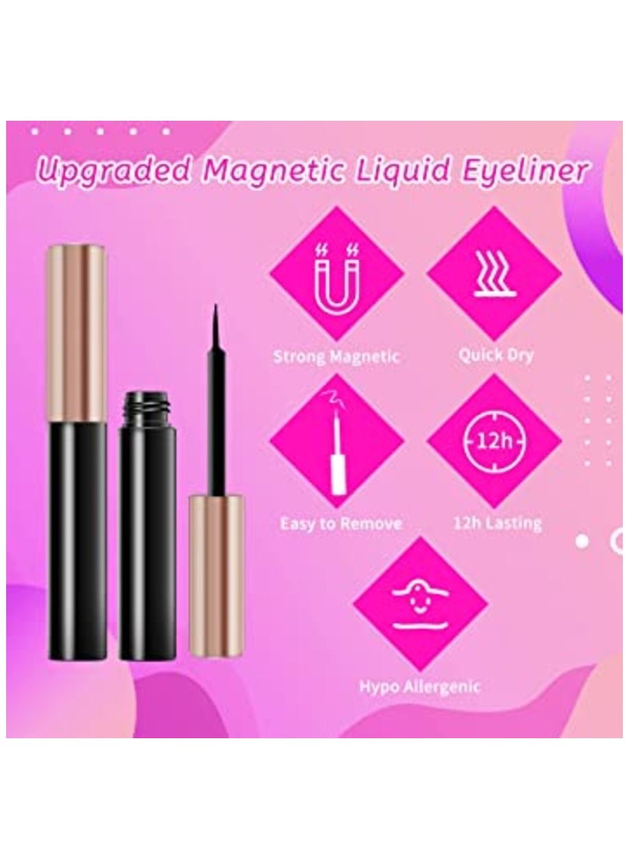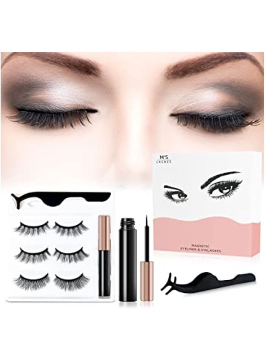 Upgraded Magnetic Eyelashes Kit Magnetic Lashes with Eyeliner Set 3D Reusable No Glue False Lashes Set with Tweezers 3 Pairs 3D 5 to 15mm