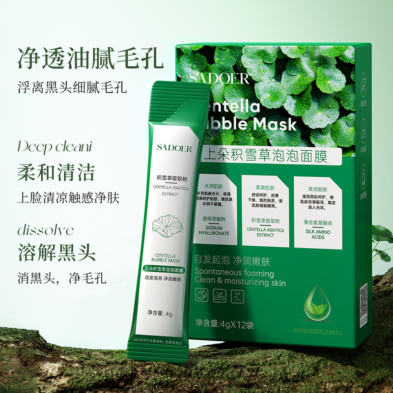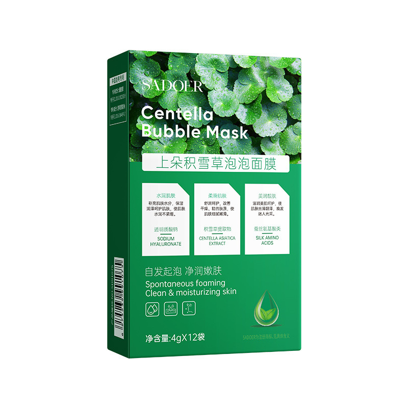 | nameOriginal | Upper Centella asiatica bubble mask 4X12 bags refreshing brightening skin removing oil bubble professional bubble mask wholesale |