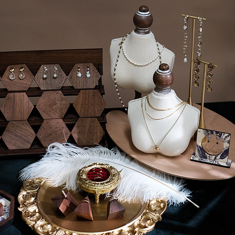 | nameOriginal | Upright embroidered jewelry display rack earrings storage rack ring holder necklace rack set jewelry jewelry display props |
