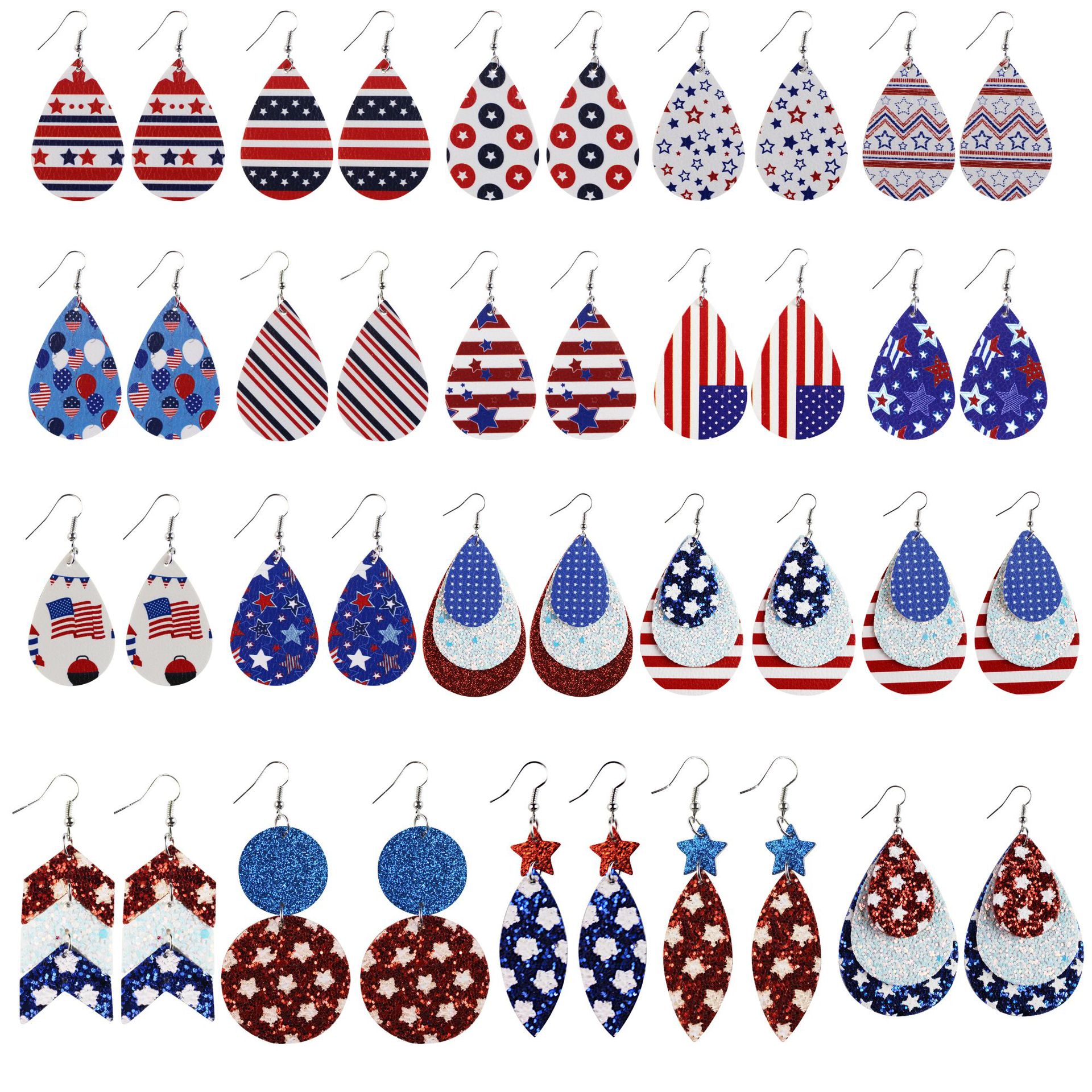 US Star Stripe Element Independence Day Election Theme Leather Earrings Earrings DIY Cross Border Amazon