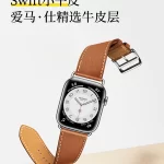 [US W&P] Suitable for Apple iwatch8 watch apple watch strap S9 genuine leather ultra2 autumn and winter 7 Hermès/Shi leather 6 high-end sense 5 men se women 2023 new style 44