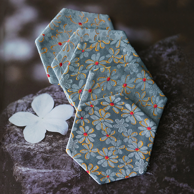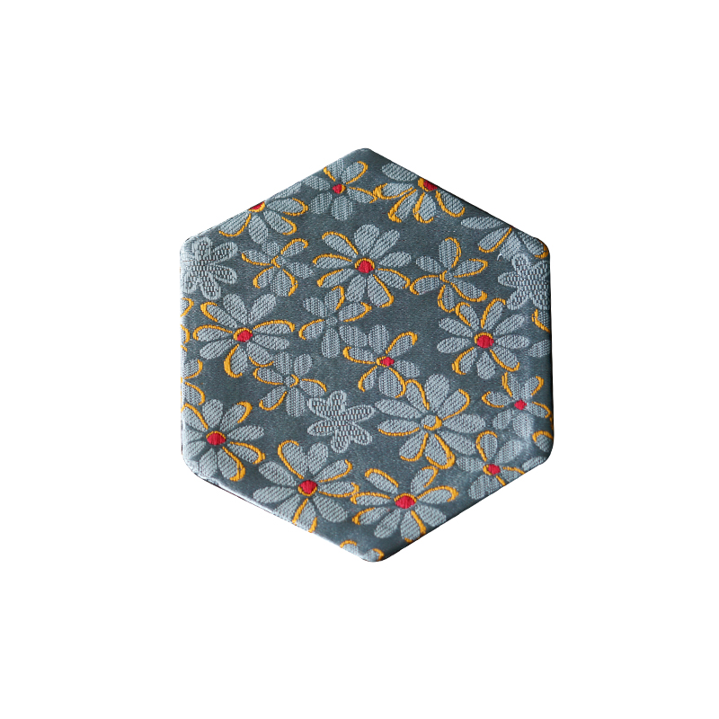 US4A dried Shengjia handmade brocade hexagonal small coaster pot mat Chinese Song Jin fabric cup holder tea ceremony