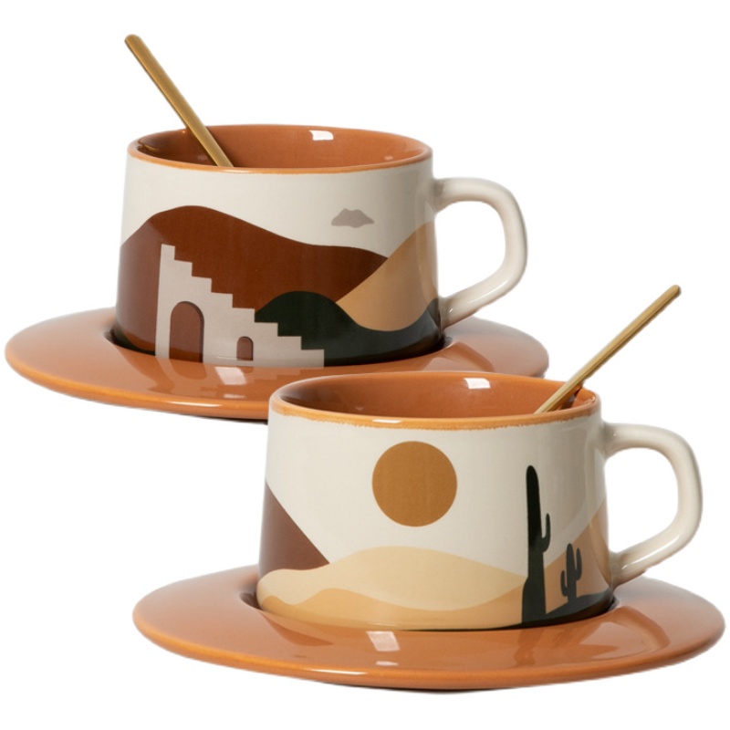 US4A European ins style ceramic coffee cup and saucer suit vintage gift home Garland Cup gift box