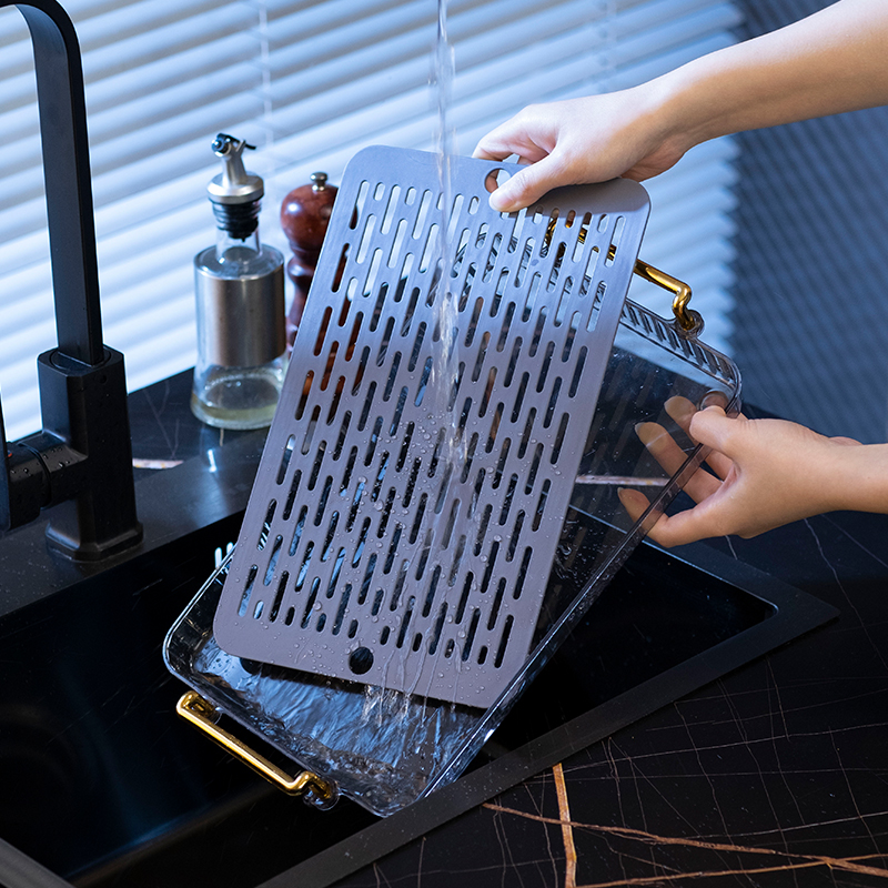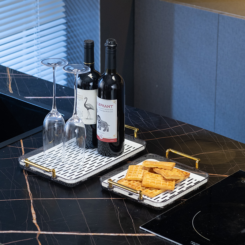 US4A light luxury tray Living Room Bar water cup tea tray draining tray household dessert fruit tray with handle rectangular