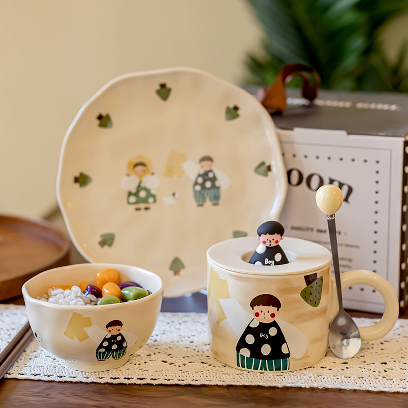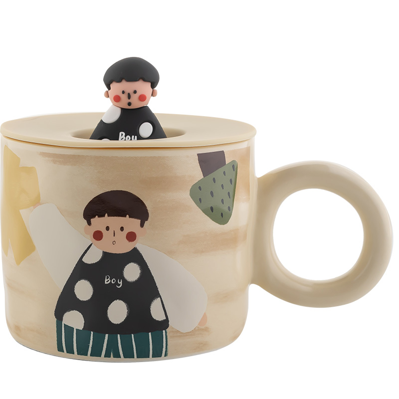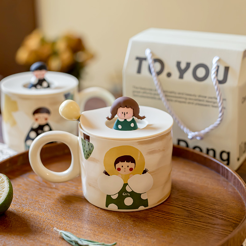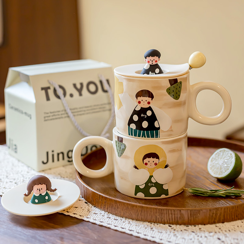 | nameOriginal | US4A vintage boys and girls mug cute couple ceramic cup household with lid spoon breakfast Cup pair |