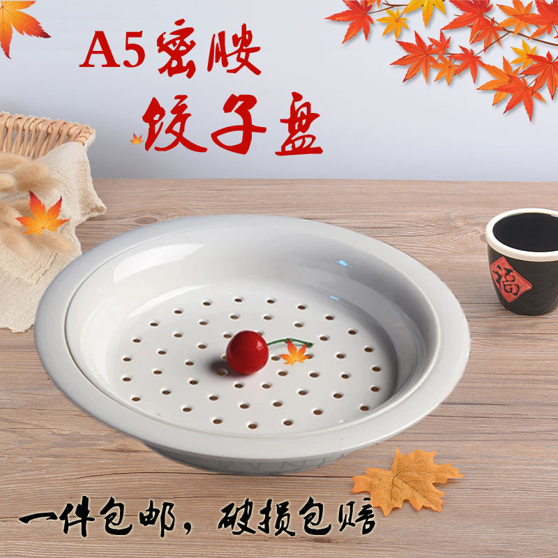 US4AA5 melamine resin double-layer draining dumpling plate imitation porcelain dumpling plate round eating dumpling fruit plate
