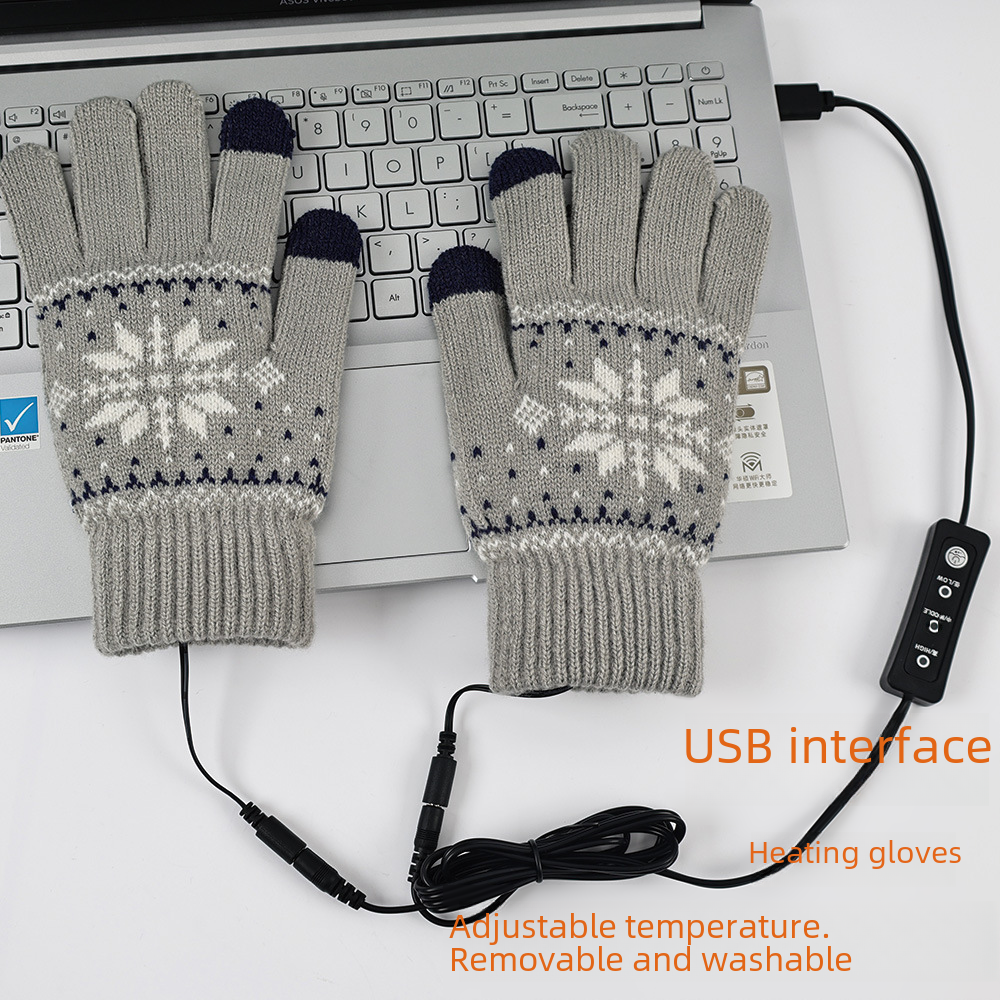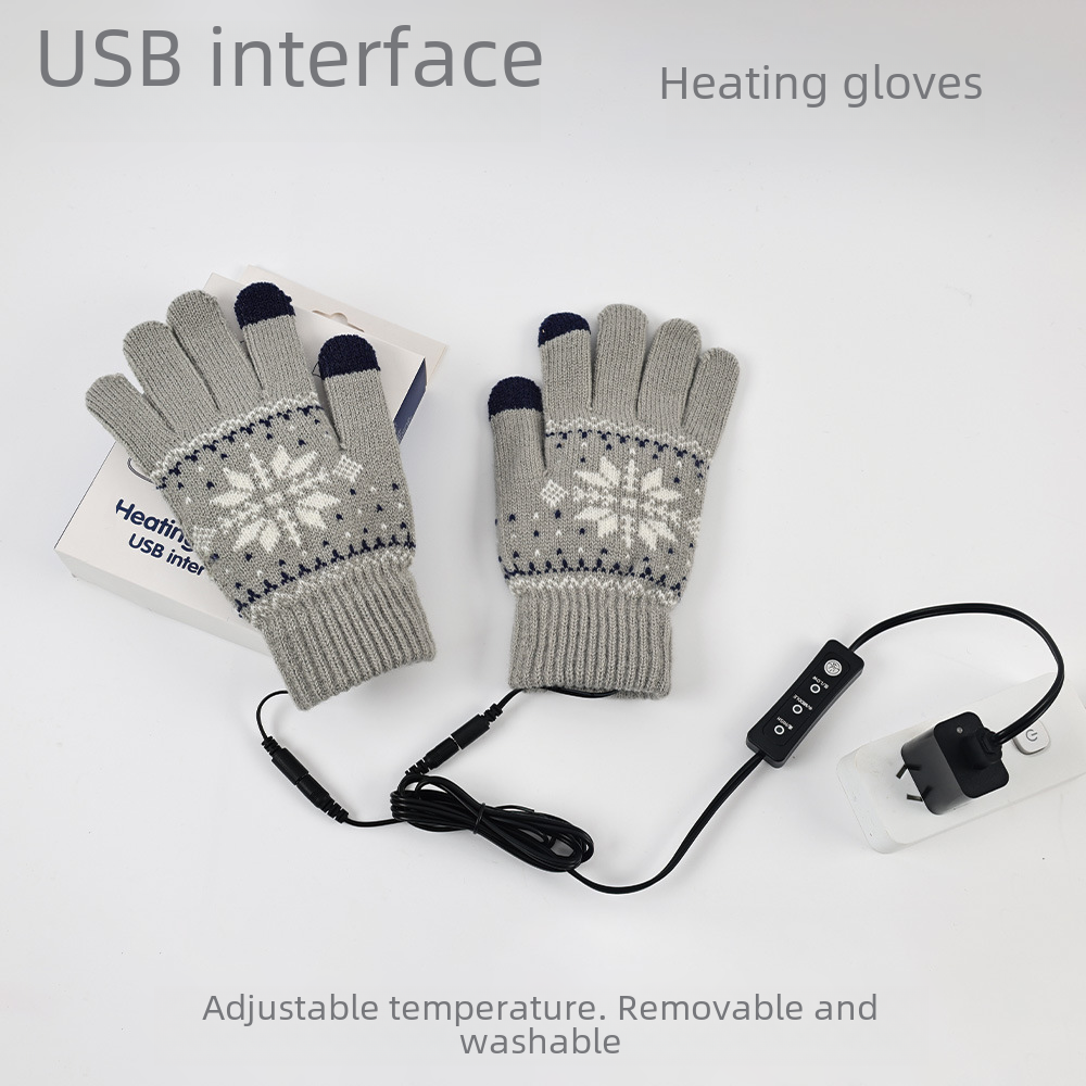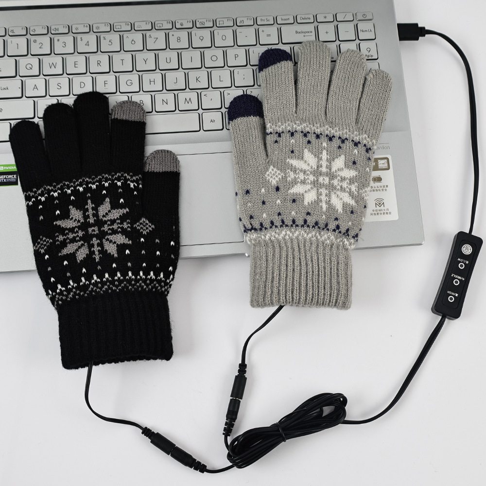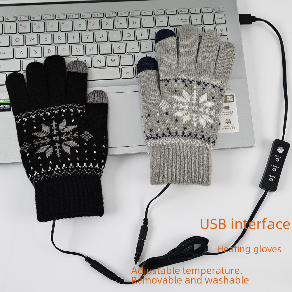 USB Electric Heating Gloves Winter Anti-frostbite Knitted Warm Gloves Touch Screen Full Finger Printing Riding Hand Guard