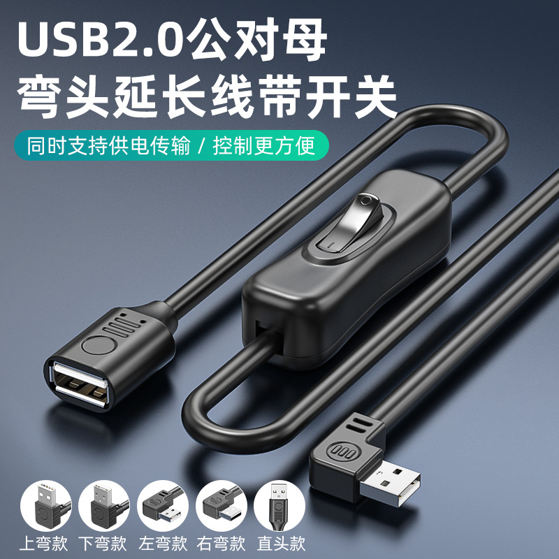 | nameOriginal | usb extension cable with switch 2.0 male to female cable data power supply cable elbow right angle 90 degrees up and down left and right |