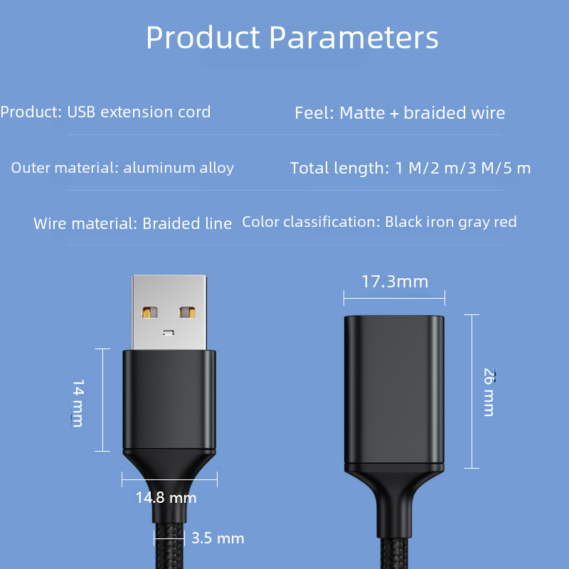 | nameOriginal | usb extension cord male to female computer U disk mouse keyboard extension data cable 1 meter 2 meter plus cord |