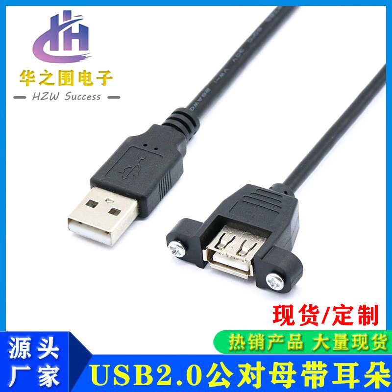USB extension cord with ears can be fixed USB2.0 male-to-female extension cord with screw holes USB lock chassis panel
