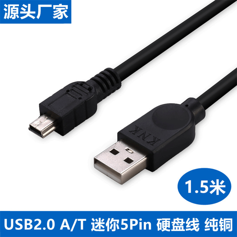 USB Line USB Mini Mobile Hard Disk Line 1.5 m Pure Copper USB2.0 to T-Port 5Pin Line Camera Data Line