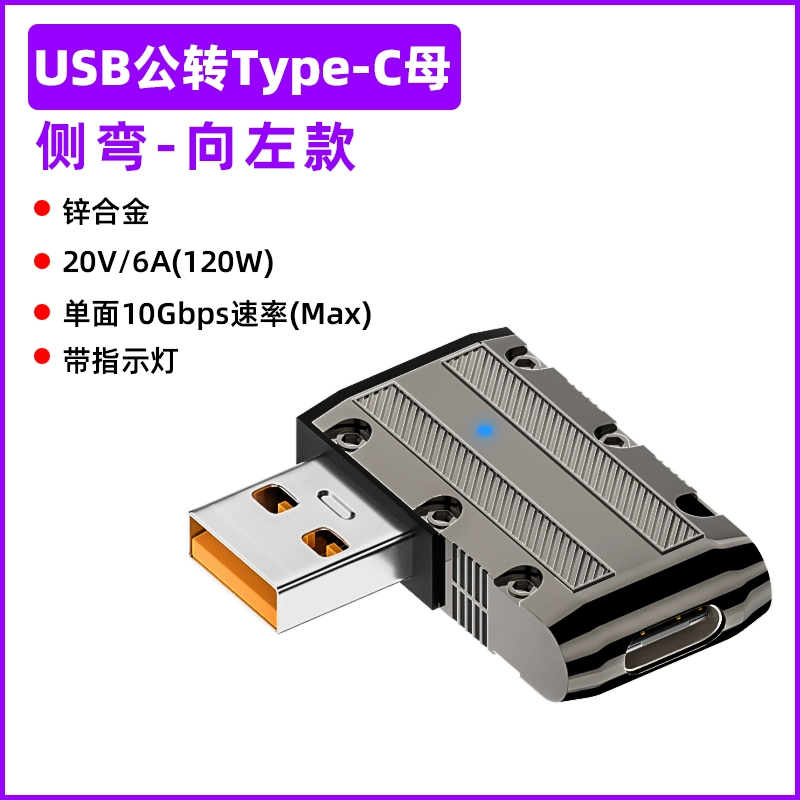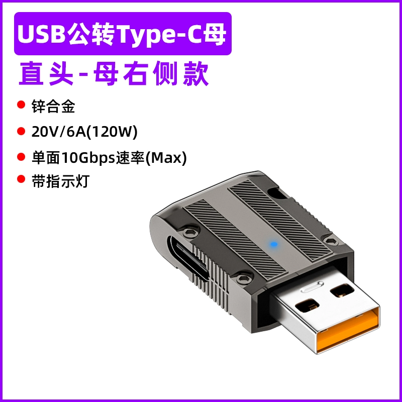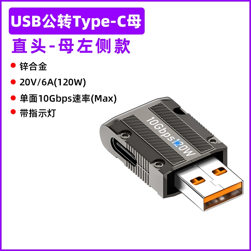 | nameOriginal | USB male to Type-C female adapter 120W fast charging converter 6A data cable USB-C high-speed transmission adapter PD charger zinc alloy suitable for Huawei, Xiaomi, Apple mobile phones and computers |