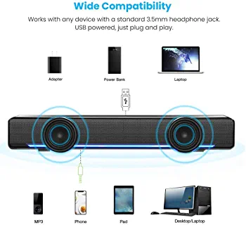 Soundbar, USB Powered Sound Bar Speakers for Computer Desktop Laptop PC